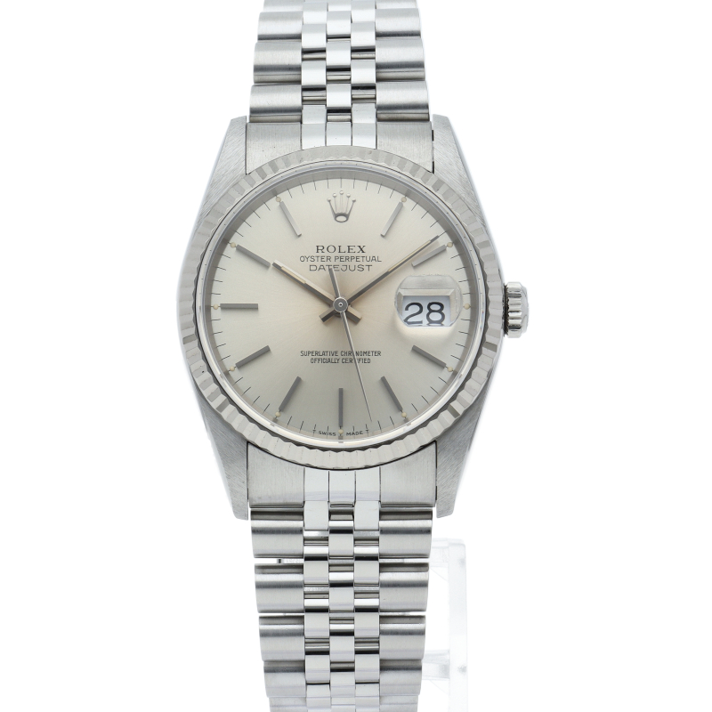 ロレックスのドレスウォッチの王道「デイトジャスト」。ホワイトゴールドとステンレスの組み合わせが上品で高級感を感じさせる1本です。