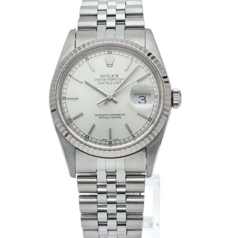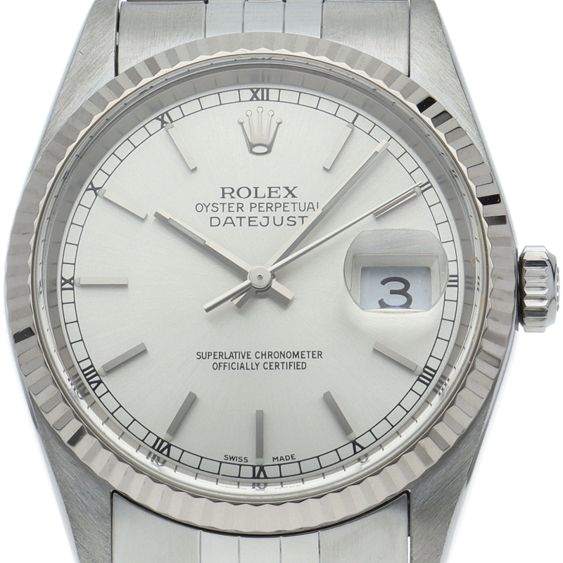 ロレックスのドレスウォッチの王道「デイトジャスト」。ホワイトゴールドとステンレスの組み合わせが上品で高級感を感じさせる1本です。
