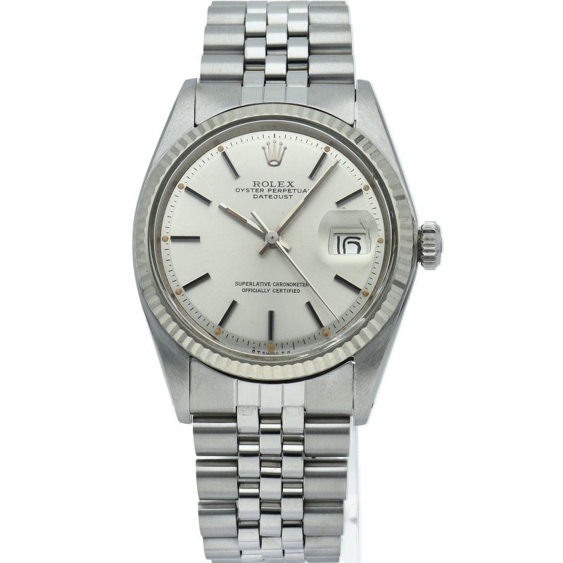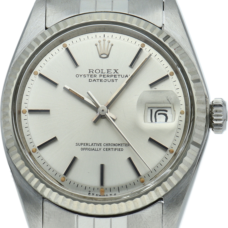 ロレックスのドレスウォッチの王道「デイトジャスト」。ホワイトゴールドとステンレスの組み合わせが高級感を感じさせる1本です。プラスチック風防仕様。初めてのアンティークウォッチをお探しの方にも大変オススメです。