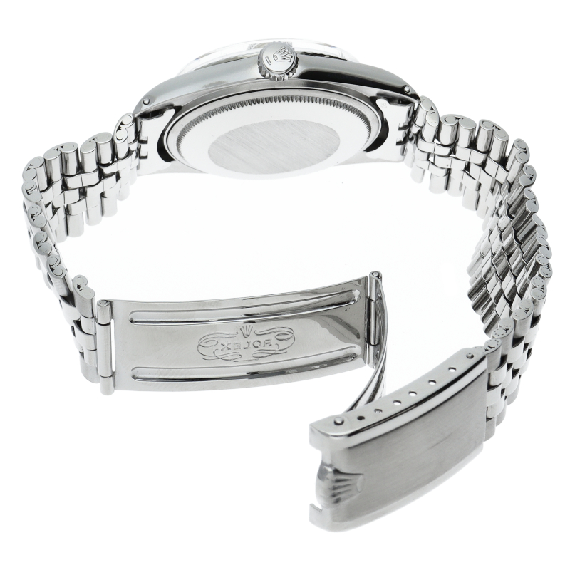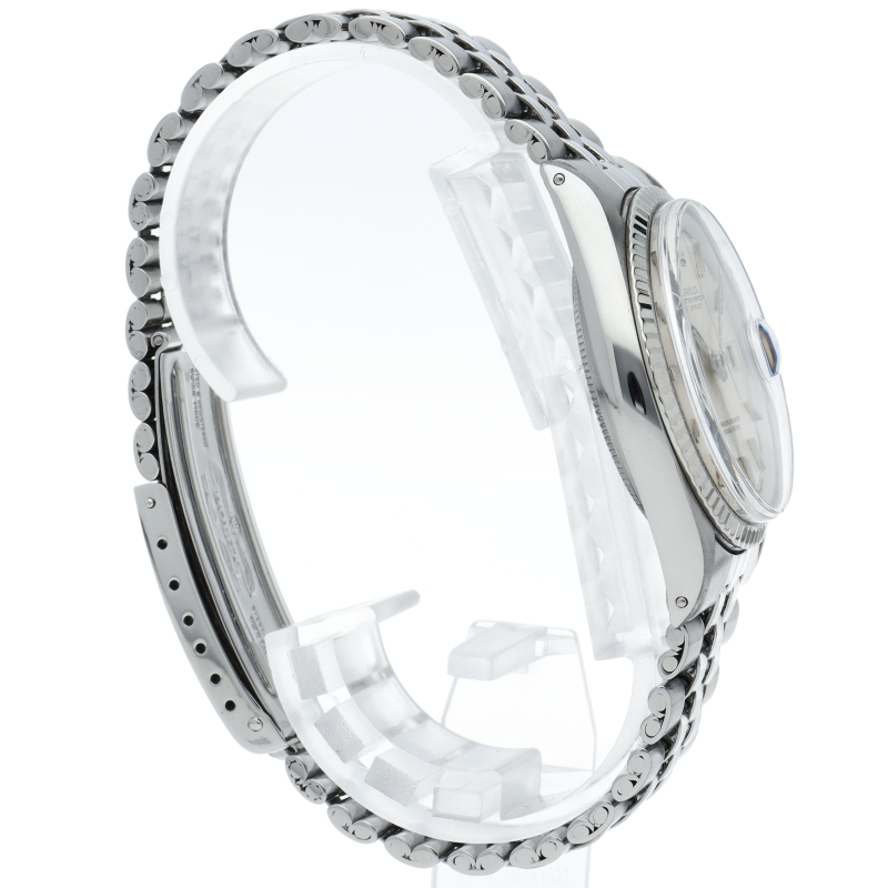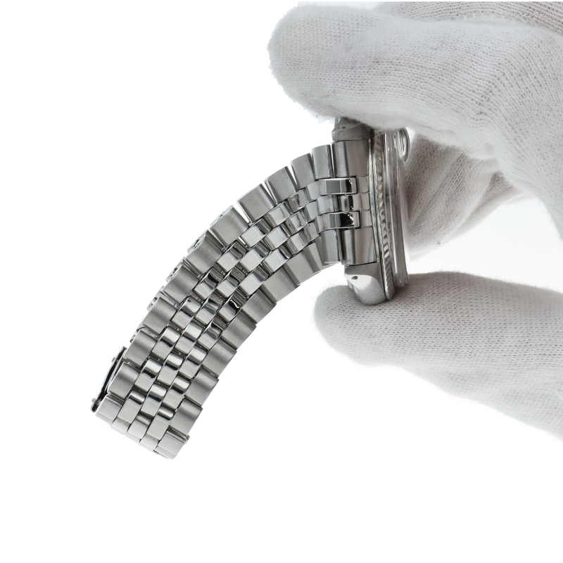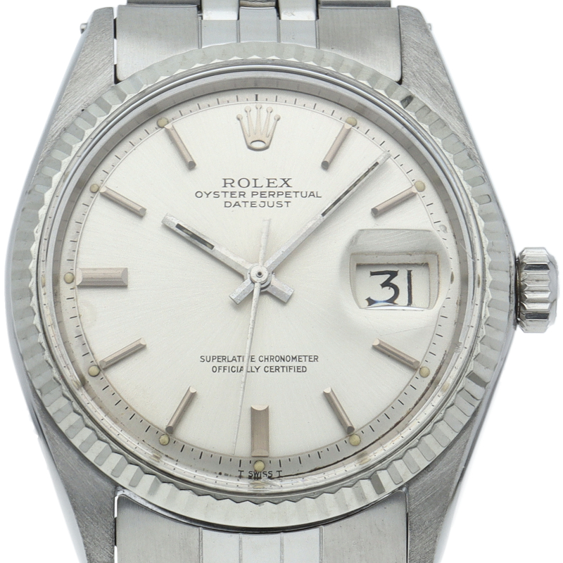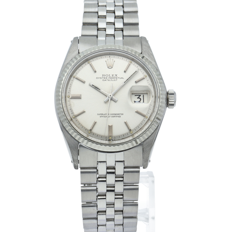 ロレックスのドレスウォッチの王道「デイトジャスト」。ホワイトゴールドとステンレスの組み合わせが高級感を感じさせる1本です。プラスチック風防仕様。