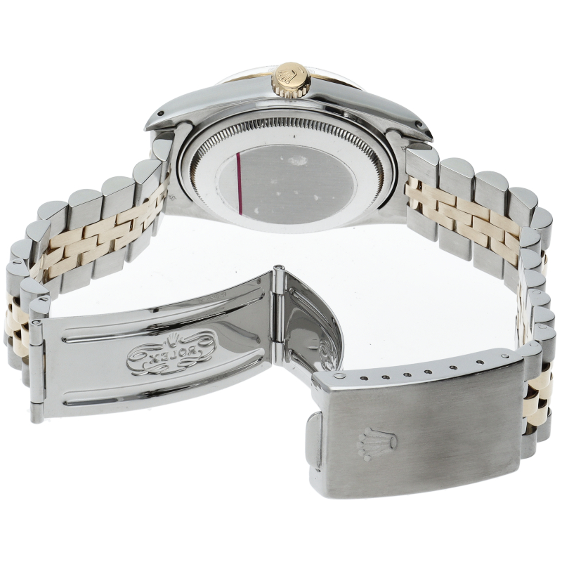 ロレックスドレスウォッチの王道「デイトジャスト」。イエローゴールドとステンレスの組み合わせが高級感を感じさせる1本です。プラスチック風防仕様。