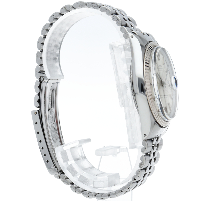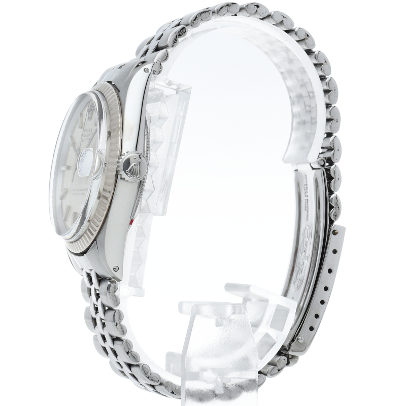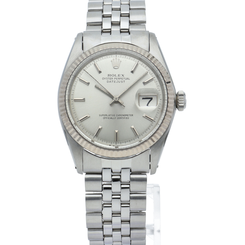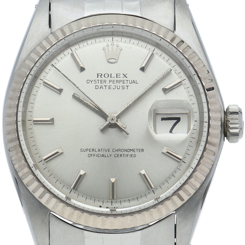 ロレックスのドレスウォッチの王道「デイトジャスト」。ホワイトゴールドとステンレスの組み合わせが高級感を感じさせる1本です。プラスチック風防仕様。