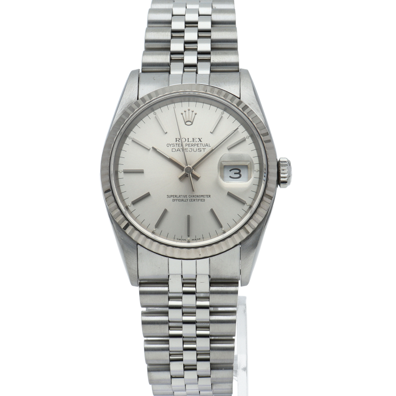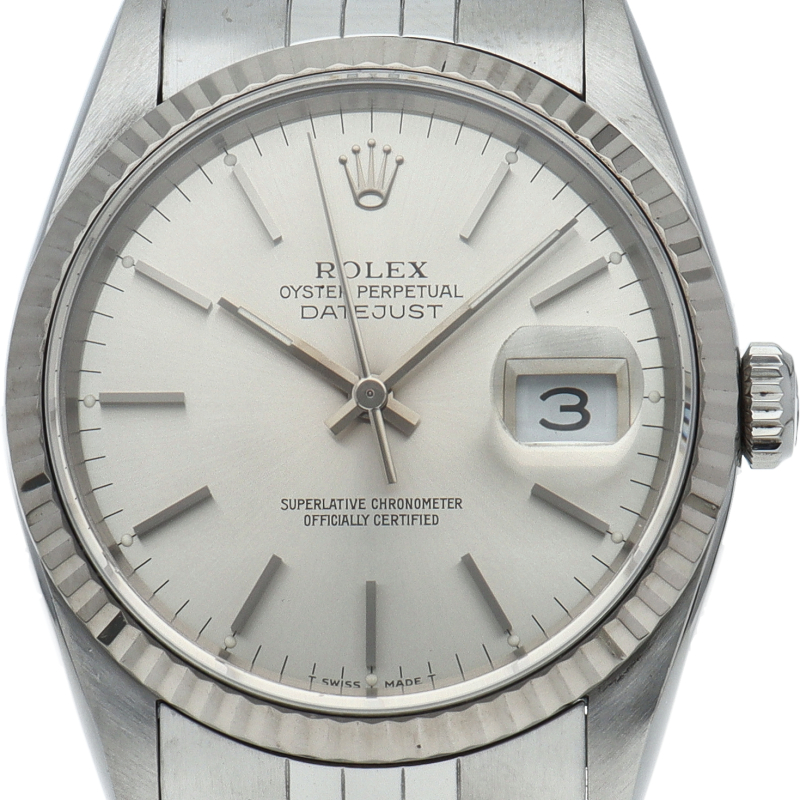 ロレックスのドレスウォッチの王道「デイトジャスト」。ホワイトゴールドとステンレスの組み合わせが上品で高級感を感じさせる1本です。