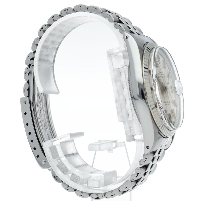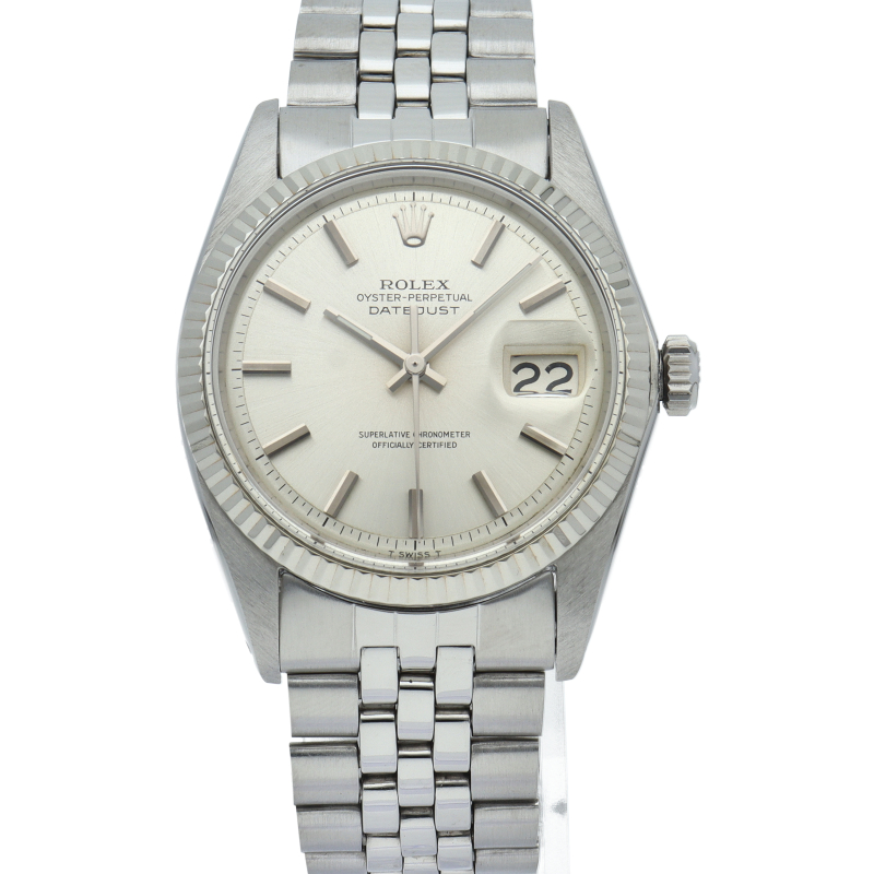 ロレックスのドレスウォッチの王道「デイトジャスト」。ホワイトゴールドとステンレスの組み合わせが高級感を感じさせる1本です。プラスチック風防仕様。
