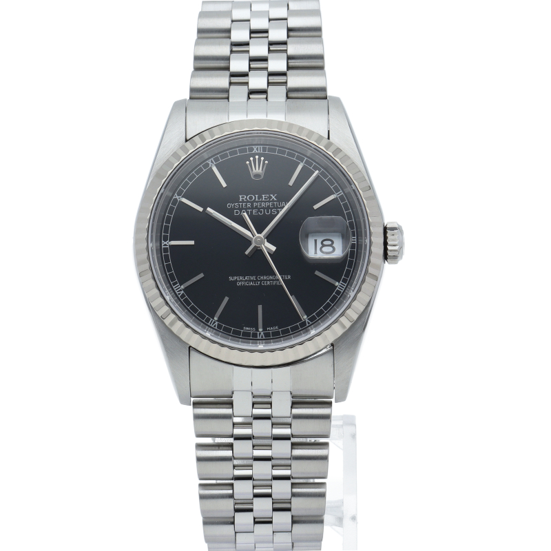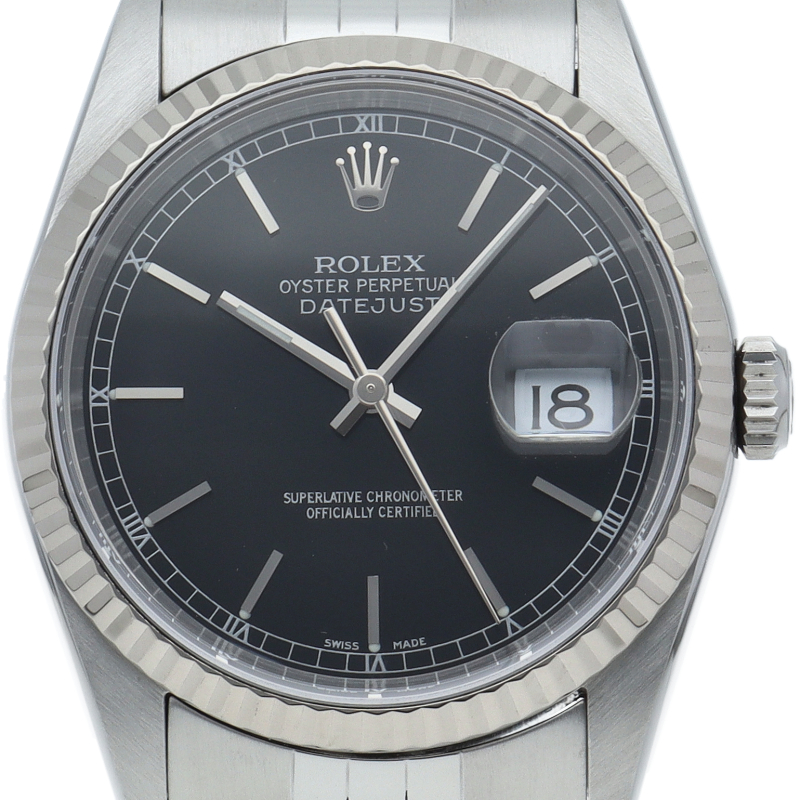 ロレックスを代表するドレスウォッチで、艶やかなブラックにシンプルなバーインデックスがさり気なくデザイン性を高めてくれており、どんなシーンや装いにも合わせやすく、絶大な人気を得ています。