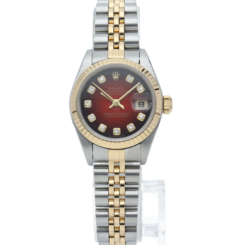 デイトジャスト レディース時計 10Pダイヤ レッドグラデーション