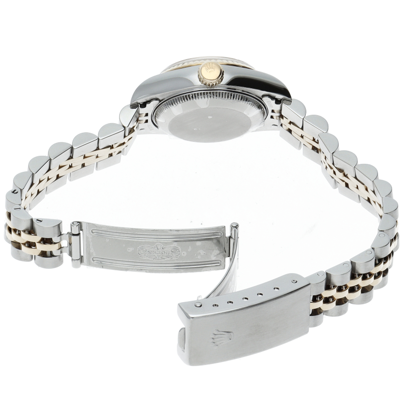 ロレックスのドレスウォッチで幅広い年齢層に愛されているデイトジャスト。イエローゴールドとステンレスのコンビ仕様に10Pダイヤが施され豪華です。