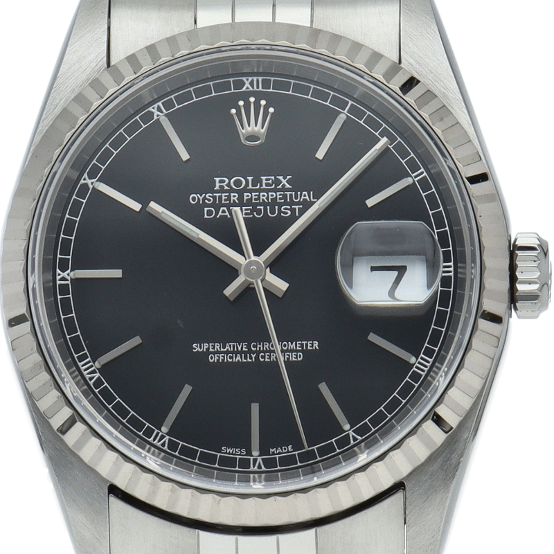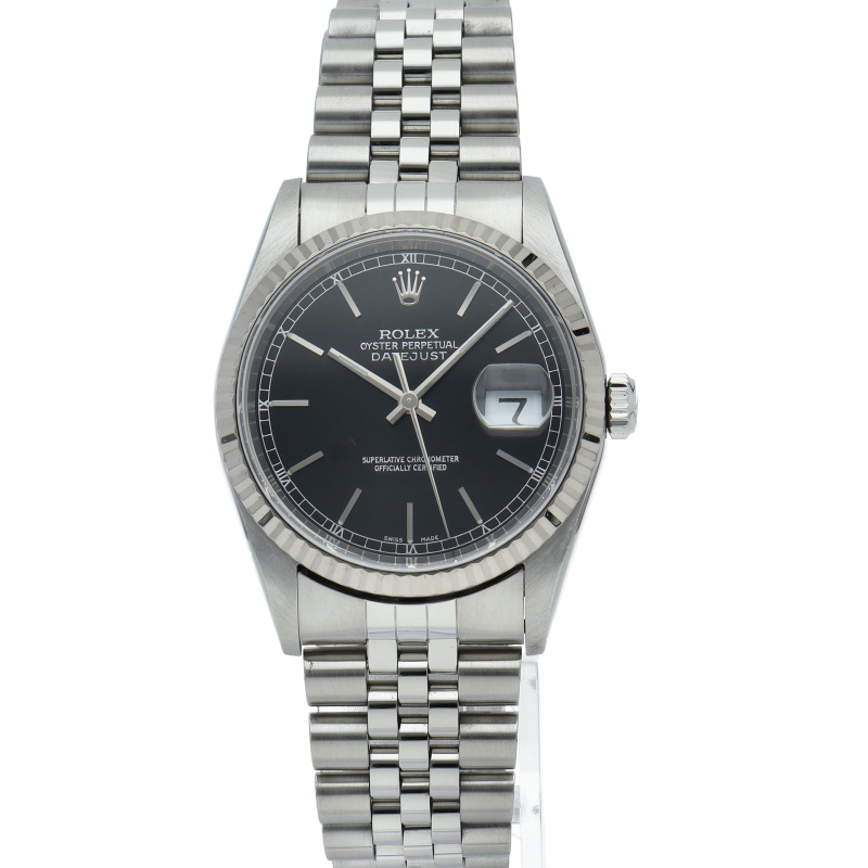 ロレックスを代表するドレスウォッチで、艶やかなブラックにシンプルなバーインデックスがさり気なくデザイン性を高めてくれており、どんなシーンや装いにも合わせやすく、絶大な人気を得ています。