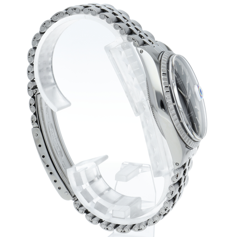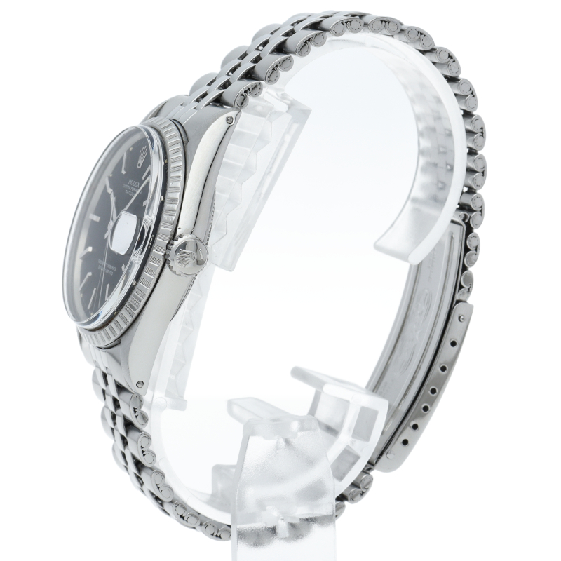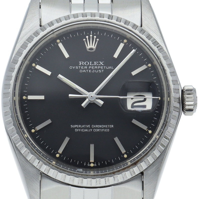 ロレックスのドレスウォッチの王道「デイトジャスト」。エンジンターンドベゼルのアンティーク感が逆に新鮮な1本。