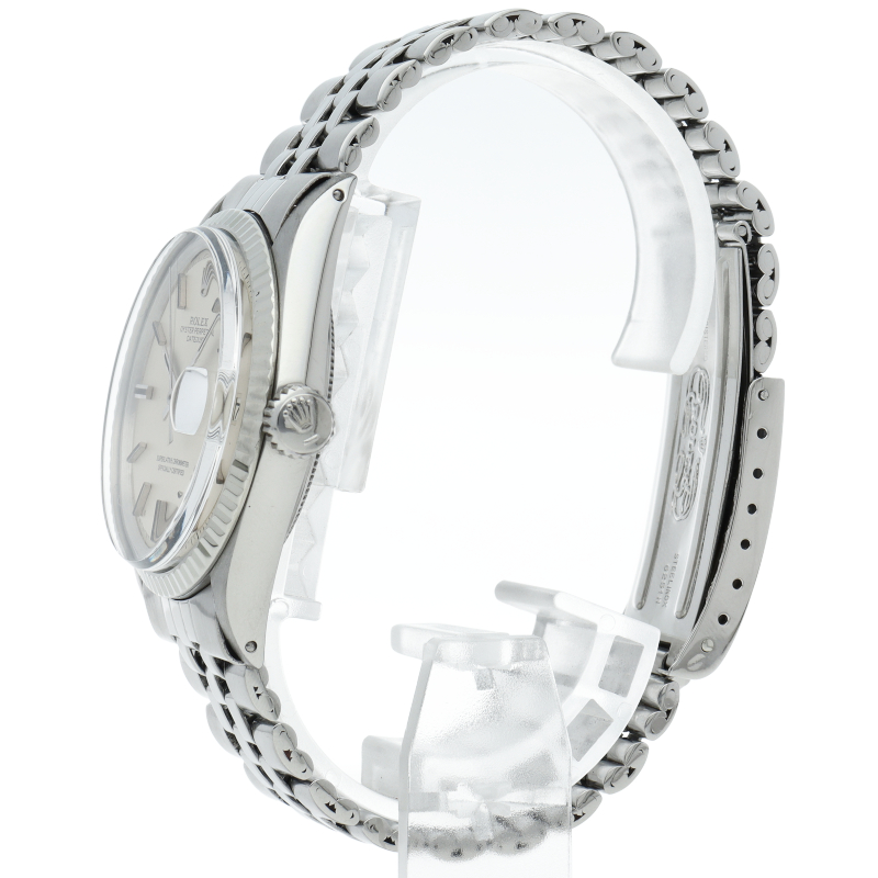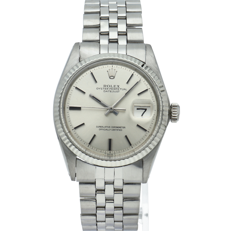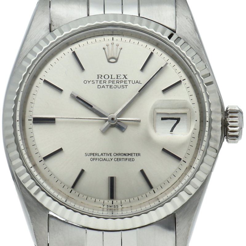 ロレックスドレスウォッチの王道「デイトジャスト」。デイトジャストのスムースベゼルは珍しいモデルです。プラスチック風防仕様。