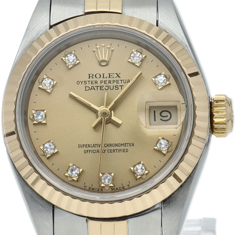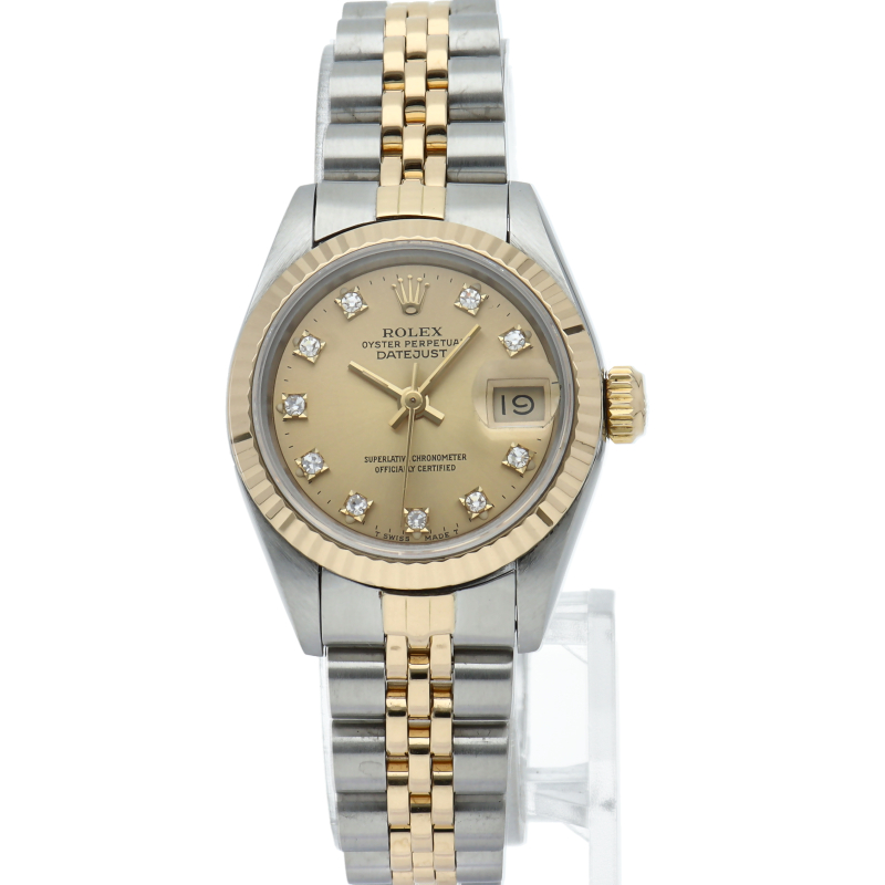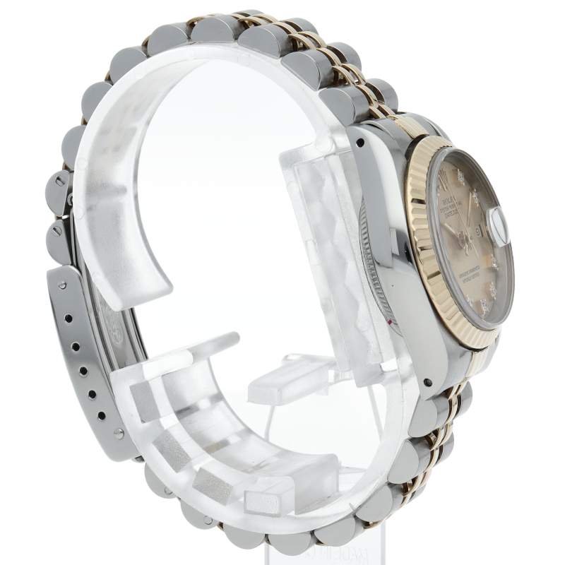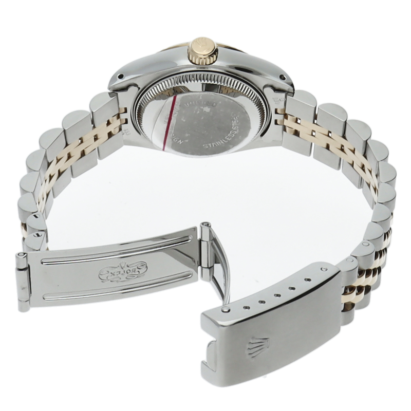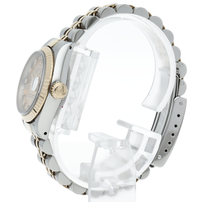 ロレックスのドレスウォッチで幅広い年齢層に愛されているデイトジャスト。イエローゴールドとステンレスのコンビ仕様に10Pダイヤが施され豪華です。