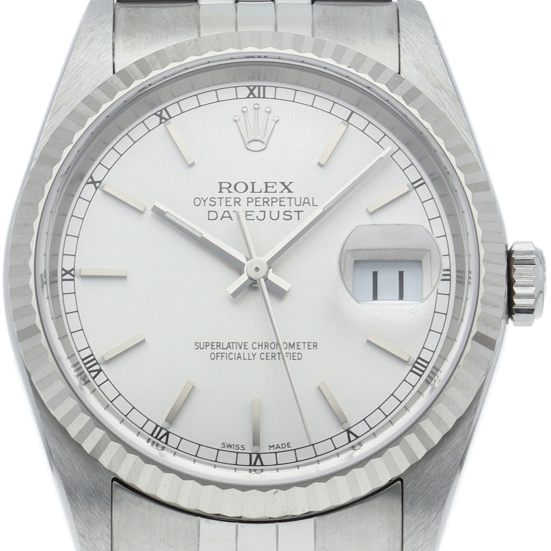 ロレックスのドレスウォッチの王道「デイトジャスト」。ホワイトゴールドとステンレスの組み合わせが上品で高級感を感じさせる1本です。
