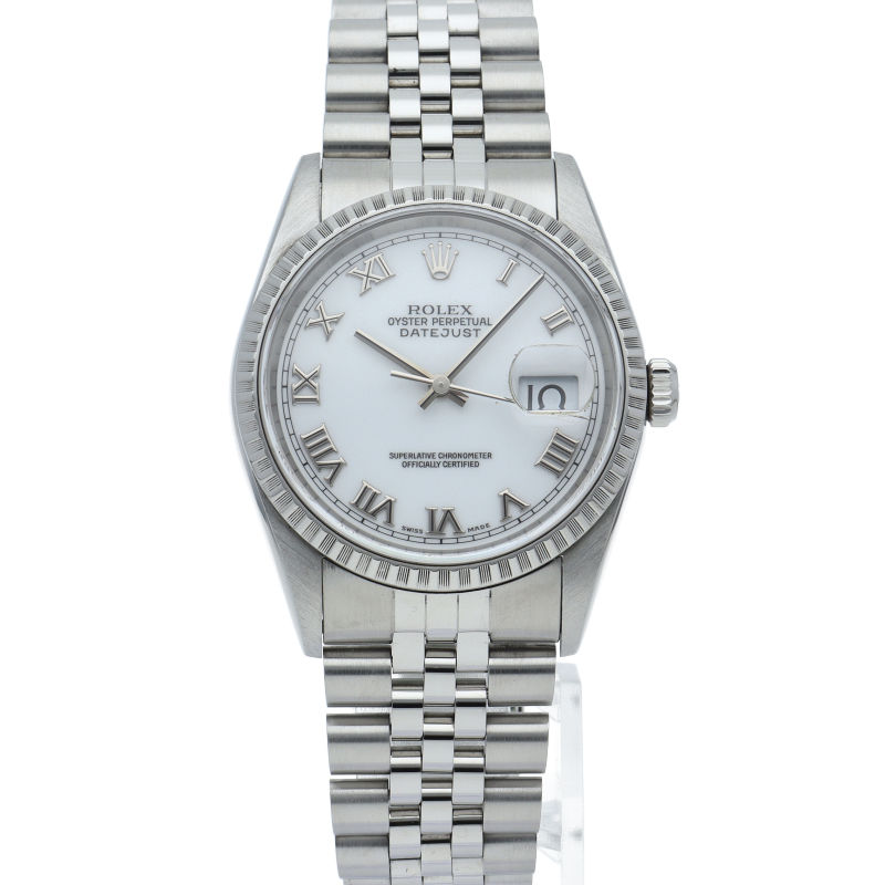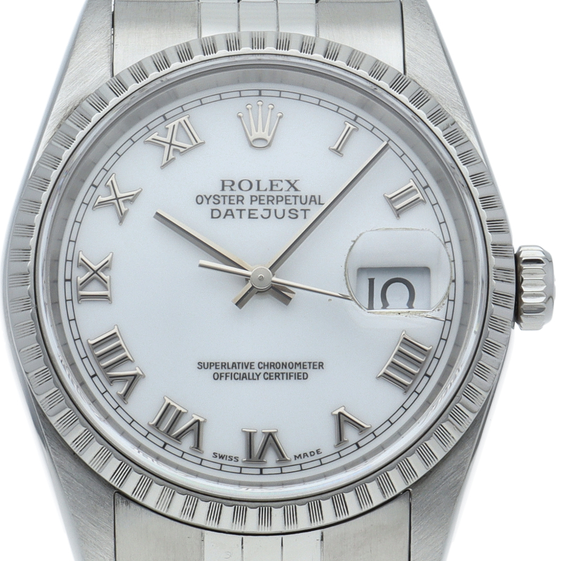 ロレックスのドレスウォッチの王道「デイトジャスト」。エンジンターンドベゼルとデイト表示機能もついてスポーティーで人気度の高い1本です。