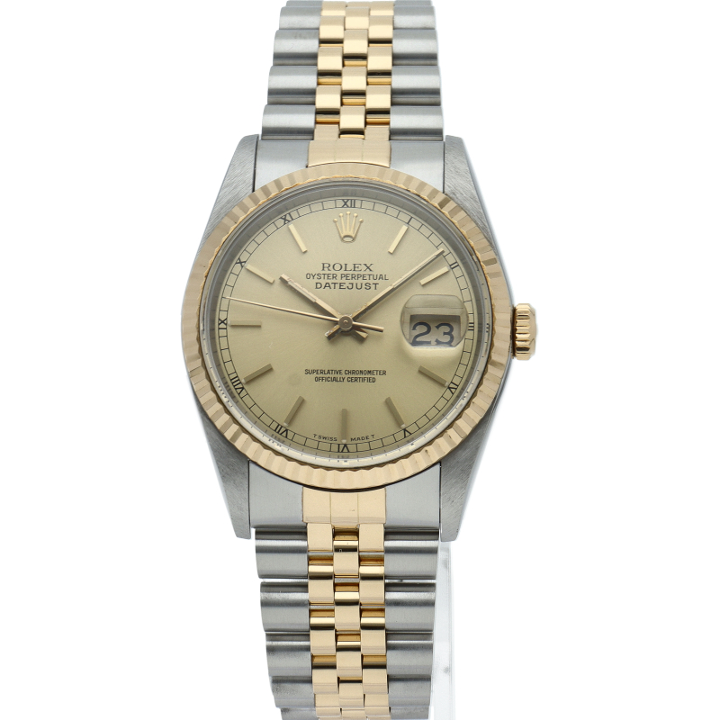 ロレックスのドレスウォッチの王道「デイトジャスト」。イエローゴールドとステンレスの組み合わせが上品で高級感を感じさせる1本です。