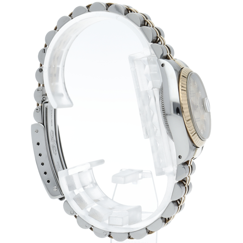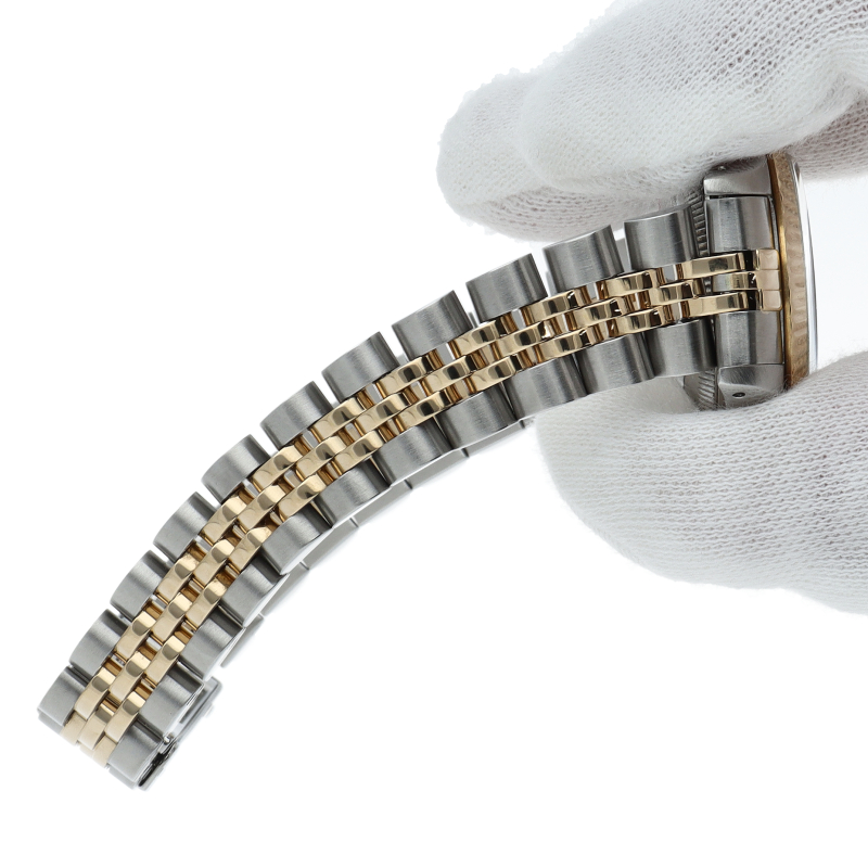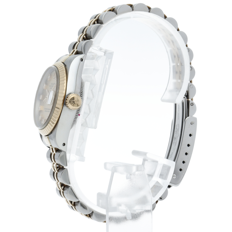 ロレックスのドレスウォッチで幅広い年齢層に愛されているデイトジャスト。イエローゴールドとステンレスのコンビ仕様に10Pダイヤが施され豪華です。