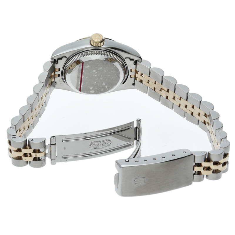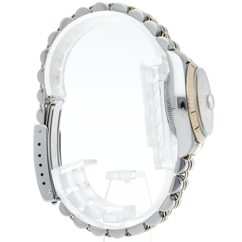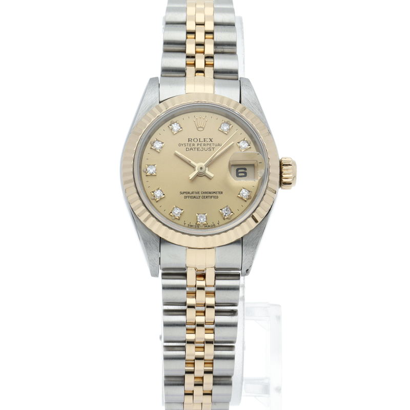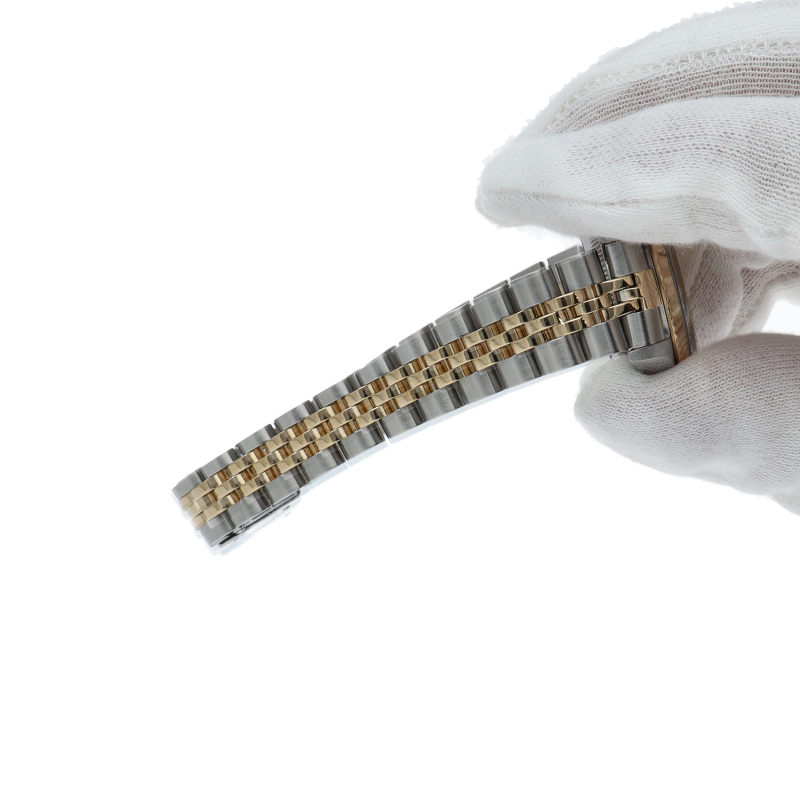 ロレックスのドレスウォッチで幅広い年齢層に愛されているデイトジャスト。イエローゴールドとステンレスのコンビ仕様に10Pダイヤが施され豪華です。