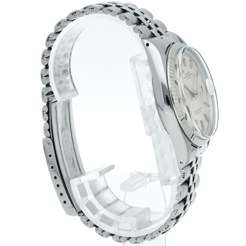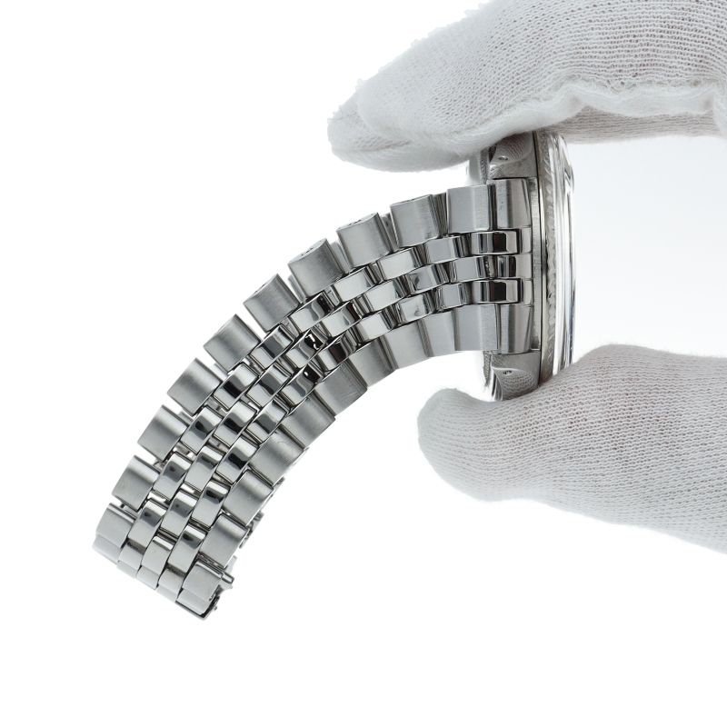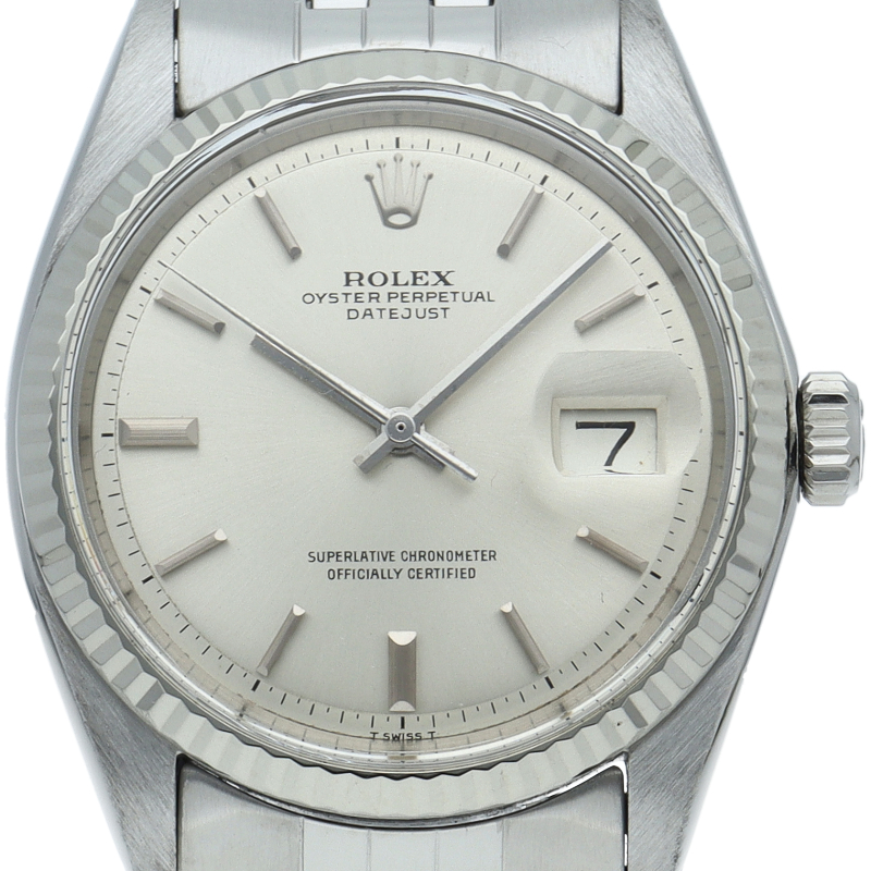 ロレックスドレスウォッチの王道「デイトジャスト」。デイトジャストのスムースベゼルは珍しいモデルです。プラスチック風防仕様。