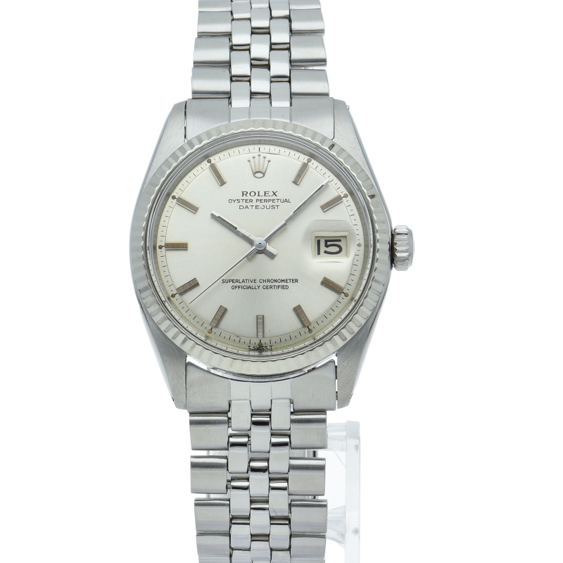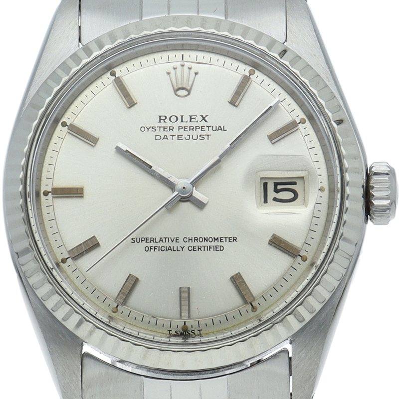 ロレックスのドレスウォッチの王道「デイトジャスト」。ホワイトゴールドとステンレスの組み合わせが高級感を感じさせる1本です。プラスチック風防仕様。