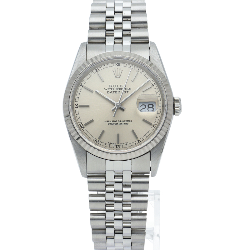 ロレックスのドレスウォッチの王道「デイトジャスト」。ホワイトゴールドとステンレスの組み合わせが高級感を感じさせる1本です。