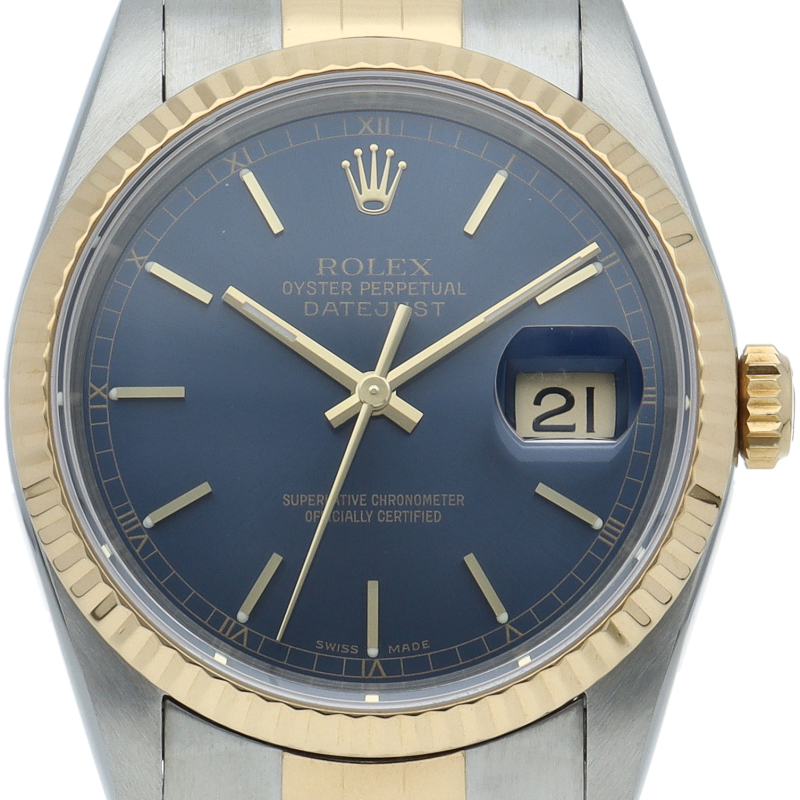 ロレックスのドレスウォッチの王道「デイトジャスト」。イエローゴールドとステンレスの組み合わせが上品で高級感を感じさせる1本です。