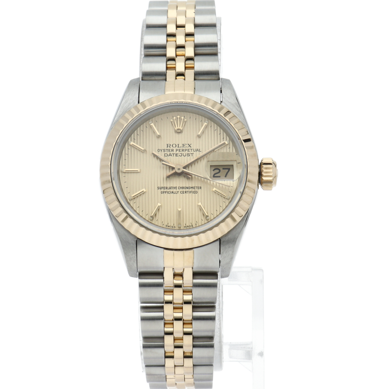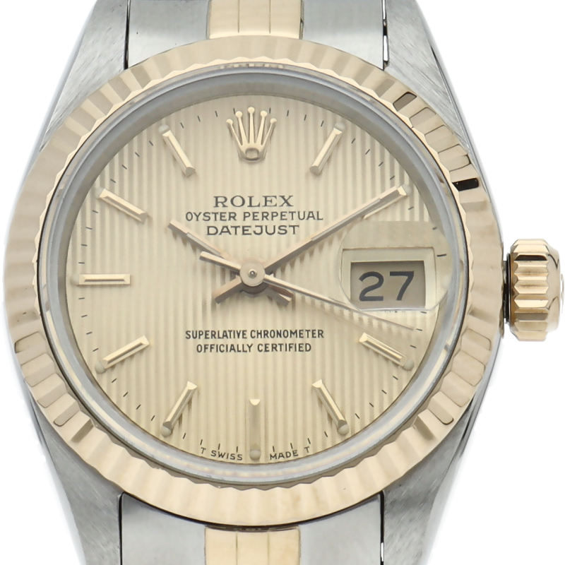 ロレックスのドレスウォッチの王道「デイトジャスト」。イエローゴールドとステンレスの組み合わせが上品で高級感を感じさせる1本です。