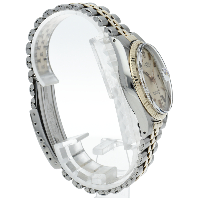 ロレックスのドレスウォッチの王道「デイトジャスト」。イエローゴールドとステンレスの組み合わせが高級感を感じさせる1本です。プラスチック風防仕様。1601/3。