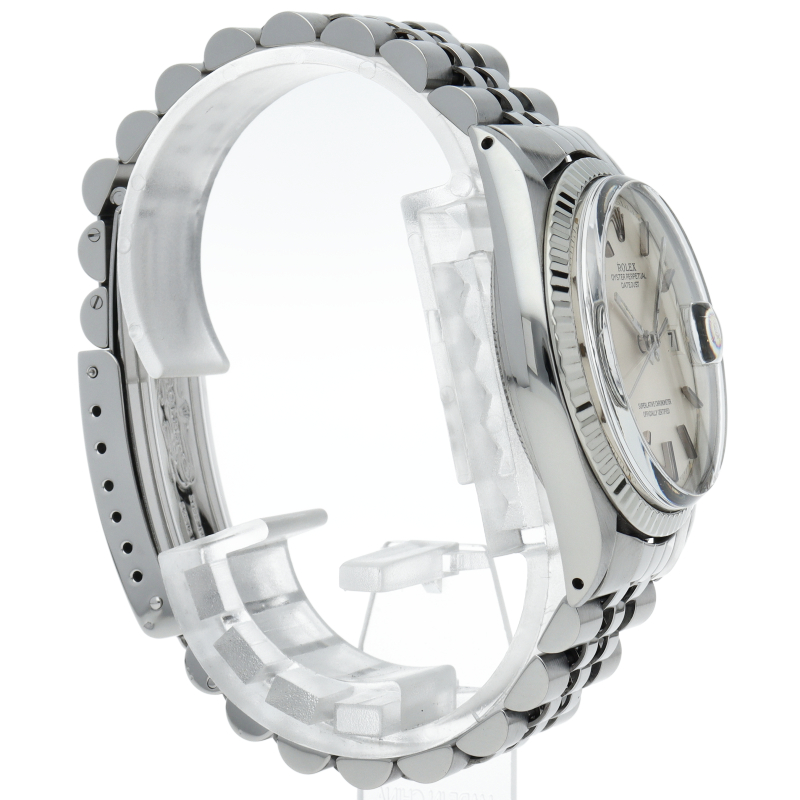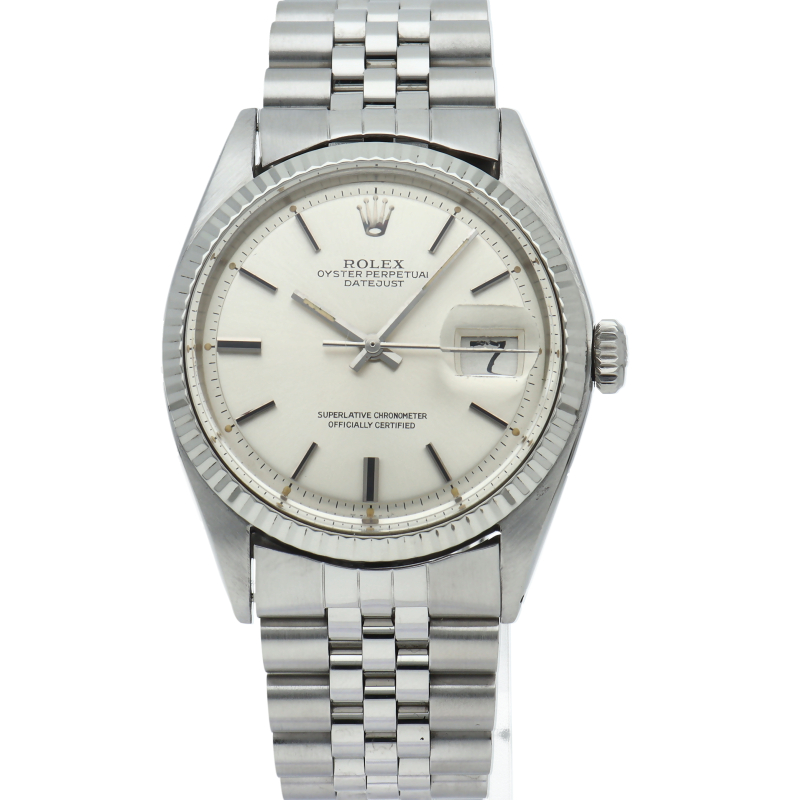 ロレックスのドレスウォッチの王道「デイトジャスト」。ホワイトゴールドとステンレスの組み合わせが高級感を感じさせる1本です。プラスチック風防仕様。