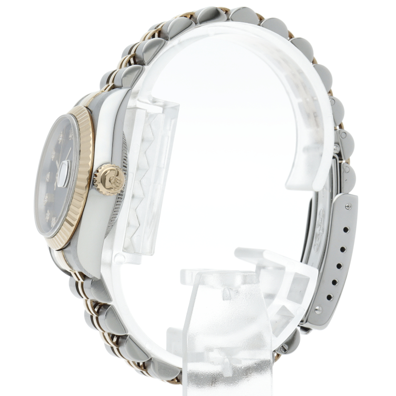 ロレックスのドレスウォッチで幅広い年齢層に愛されているデイトジャスト。イエローゴールドとステンレスのコンビ仕様に10Pダイヤが施され豪華です。