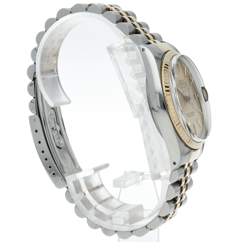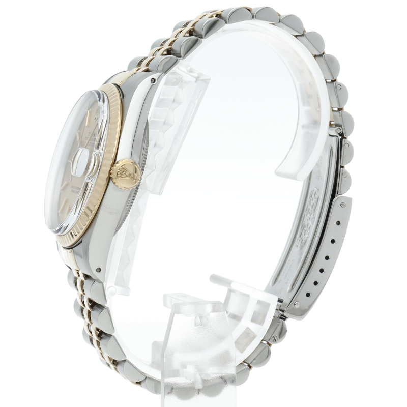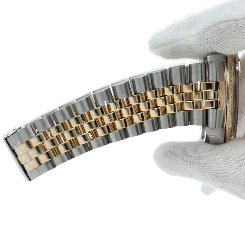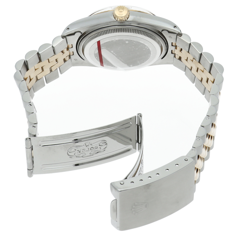ロレックスドレスウォッチの王道「デイトジャスト」。イエローゴールドとステンレスの組み合わせが高級感を感じさせる1本です。プラスチック風防仕様。