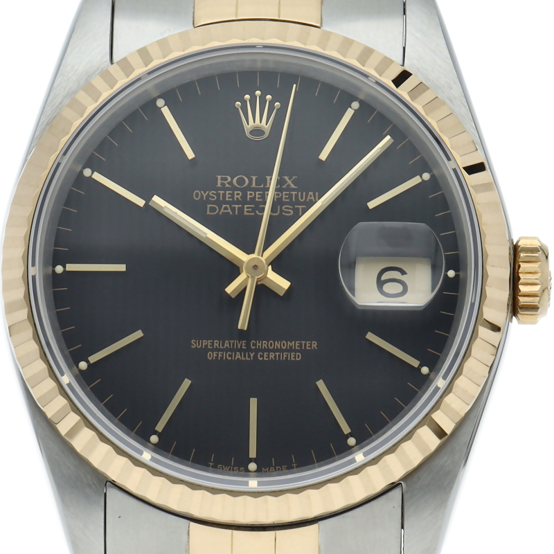 ロレックスのドレスウォッチの王道「デイトジャスト」。イエローゴールドとステンレスの組み合わせが上品で高級感を感じさせる1本です。