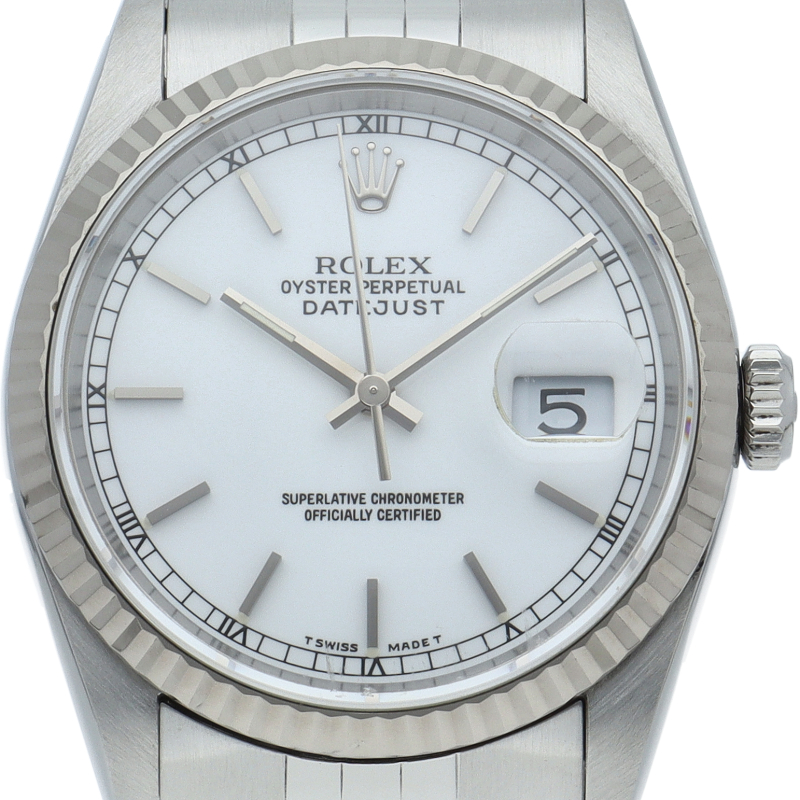 ロレックスのドレスウォッチの王道「デイトジャスト」。ホワイトゴールドとステンレスの組み合わせが上品で高級感を感じさせる1本です。