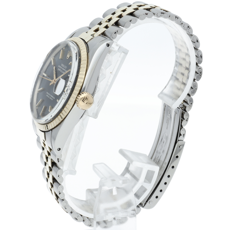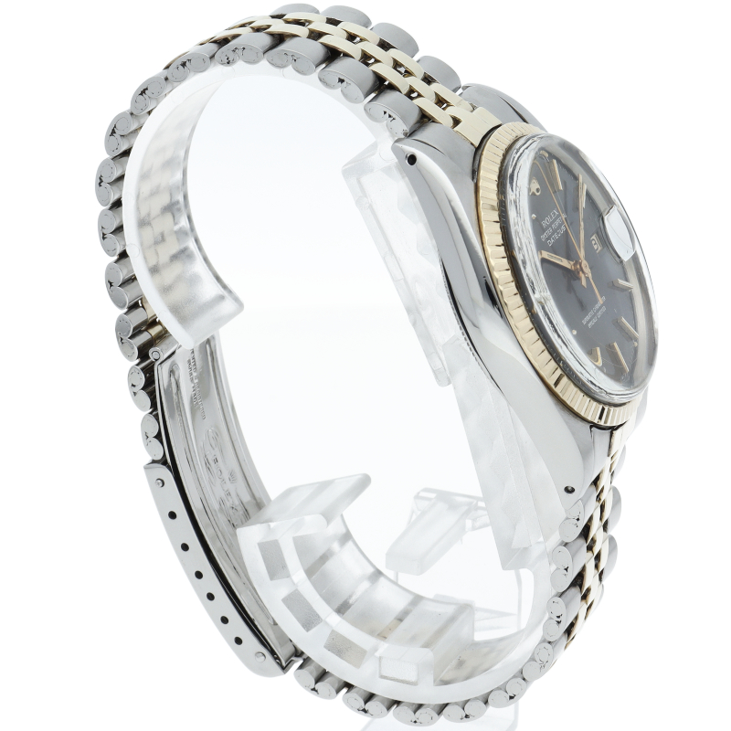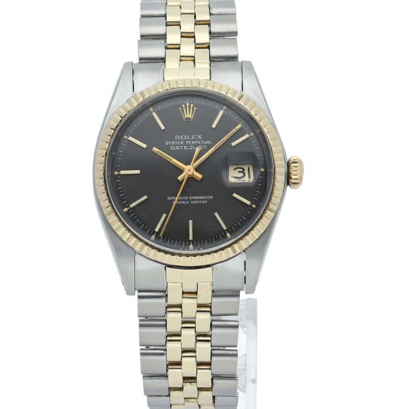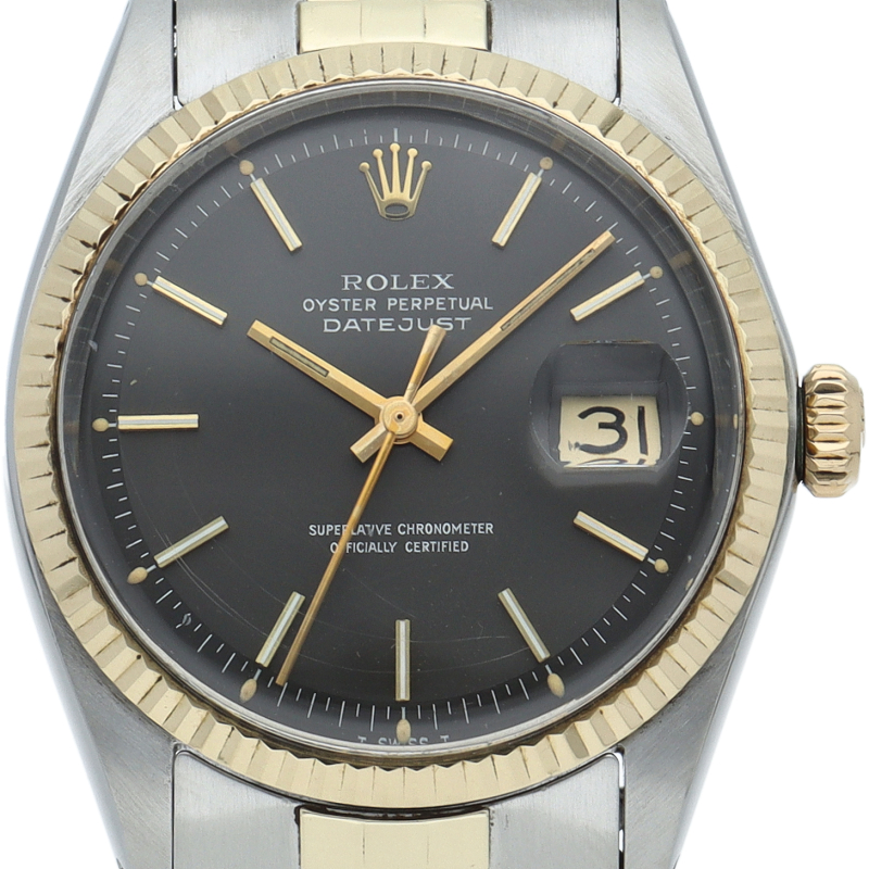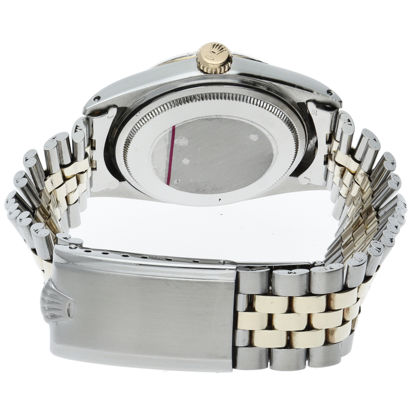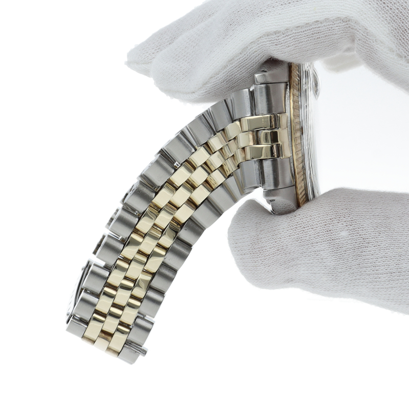 ロレックスのドレスウォッチの王道「デイトジャスト」。イエローゴールドとステンレスの組み合わせが高級感を感じさせる1本です。プラスチック風防仕様。