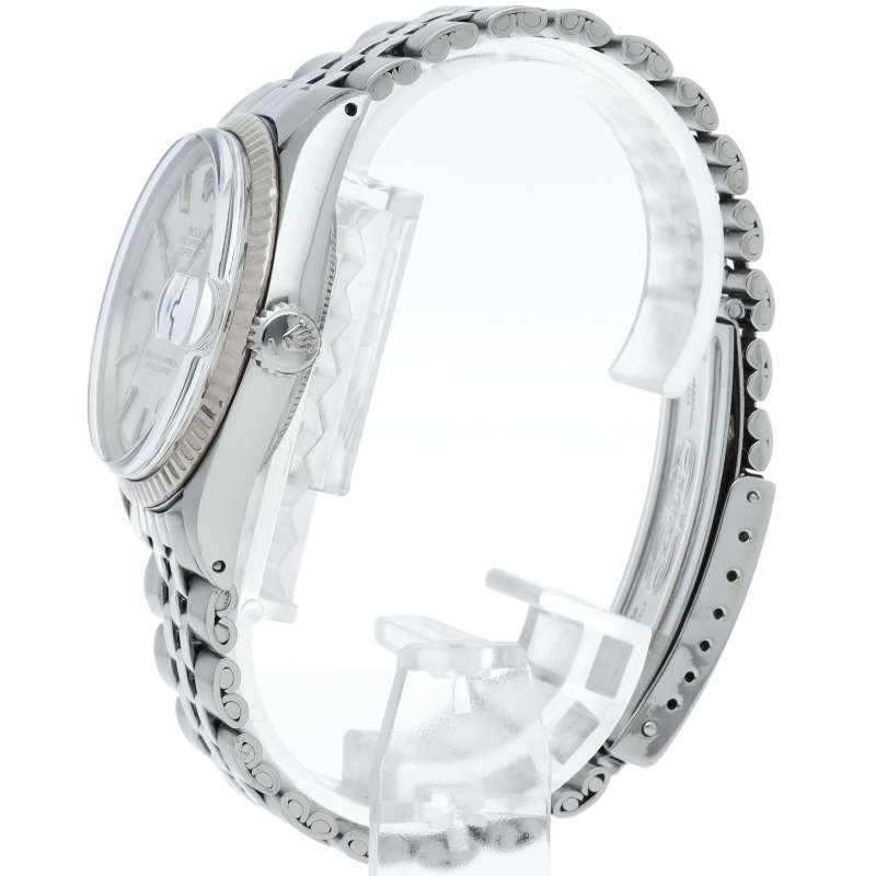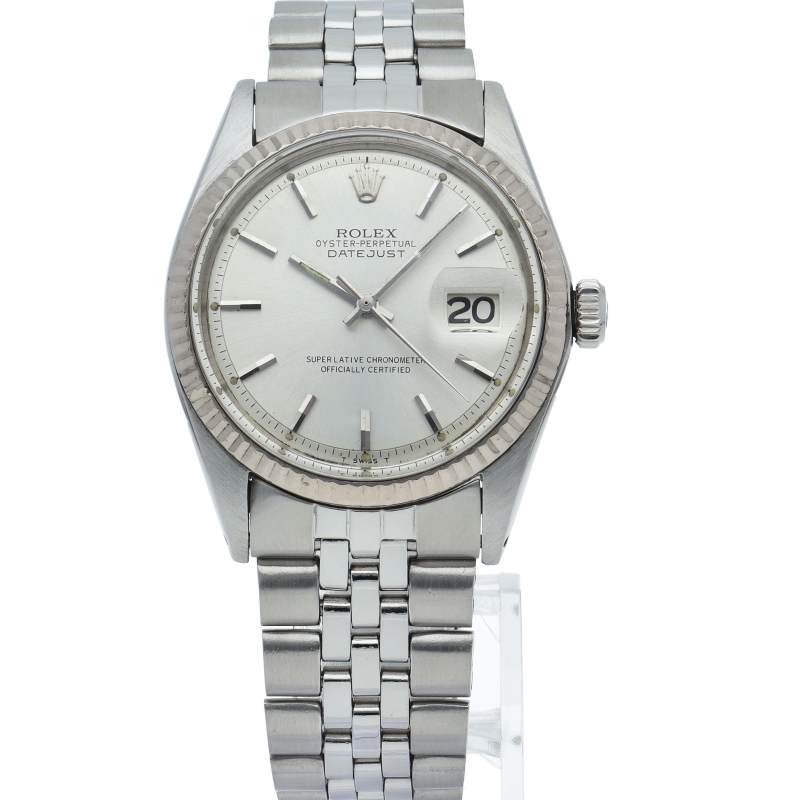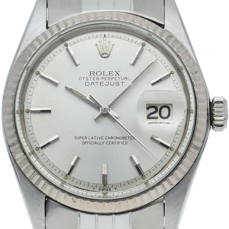 ロレックスのドレスウォッチの王道「デイトジャスト」。ホワイトゴールドとステンレスの組み合わせが高級感を感じさせる1本です。プラスチック風防仕様。