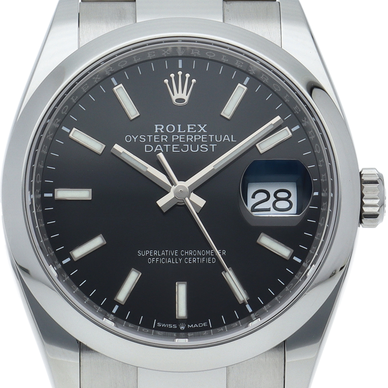 ケース径36mmのメンズモデル「デイトジャスト36」。14件もの特許を取得し、新開発の脱進機のクロナジーエスケープメントを装備した上で70時間ものロングパワーリザーブを確保した自社開発キャリバー3235を搭載します。