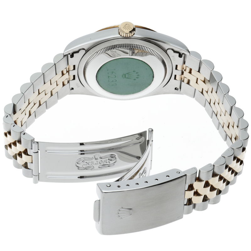 ロレックスのドレスウォッチの王道「デイトジャスト」。イエローゴールドとステンレスの組み合わせが上品で高級感を感じさせる1本です。