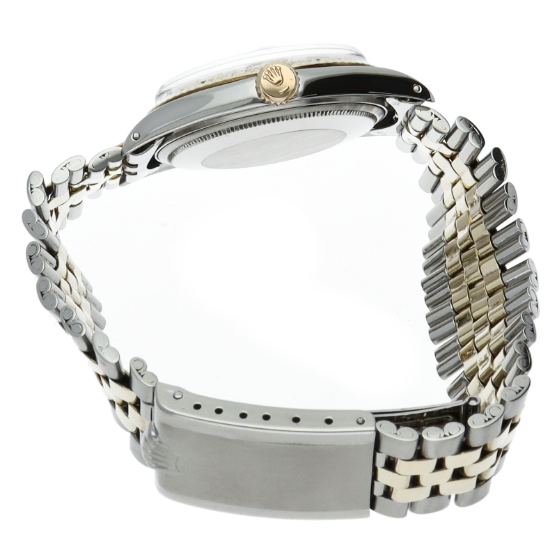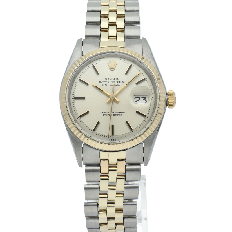 ロレックスのドレスウォッチの王道「デイトジャスト」。イエローゴールドとステンレスの組み合わせが高級感を感じさせる1本です。プラスチック風防仕様。1601/3。