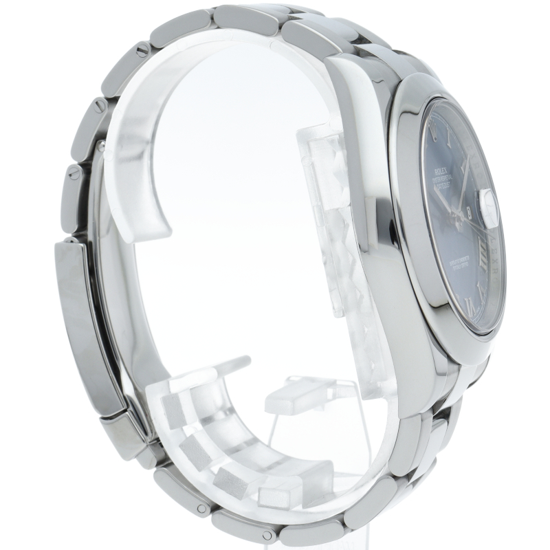 41ミリの大型サイズにボリュームアップして、視認性も存在感も高まった新世代デイトジャスト。衝撃と磁力に対して極めて高い耐性をもつパラクロム・ヘアスプリングと高性能のパラフレックス・ショックアブソーバが装備され実用性が高まった一本。