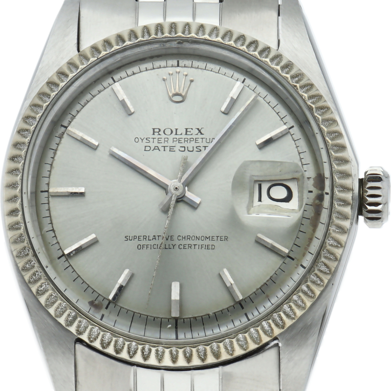 ロレックスドレスウォッチの王道「デイトジャスト」。ホワイトゴールドとステンレスの組み合わせが高級感を感じさせる1本です。