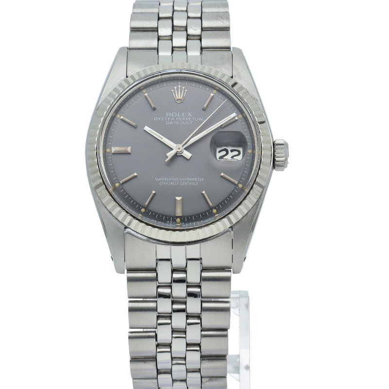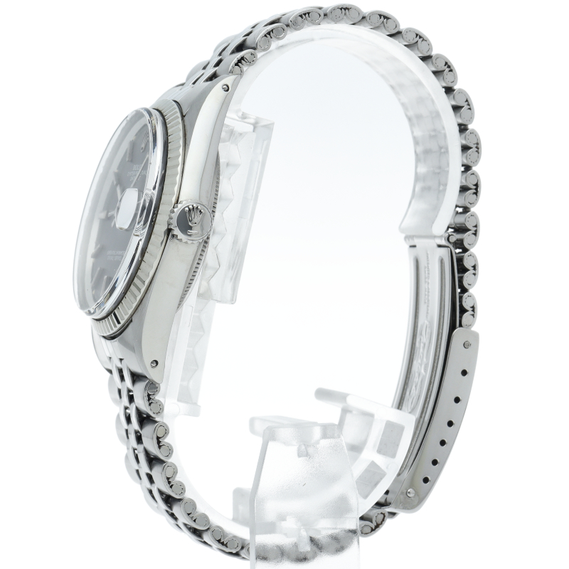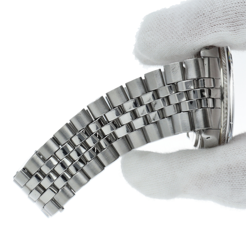 ロレックスのドレスウォッチの王道「デイトジャスト」。ホワイトゴールドとステンレスの組み合わせが高級感を感じさせる1本です。プラスチック風防仕様。