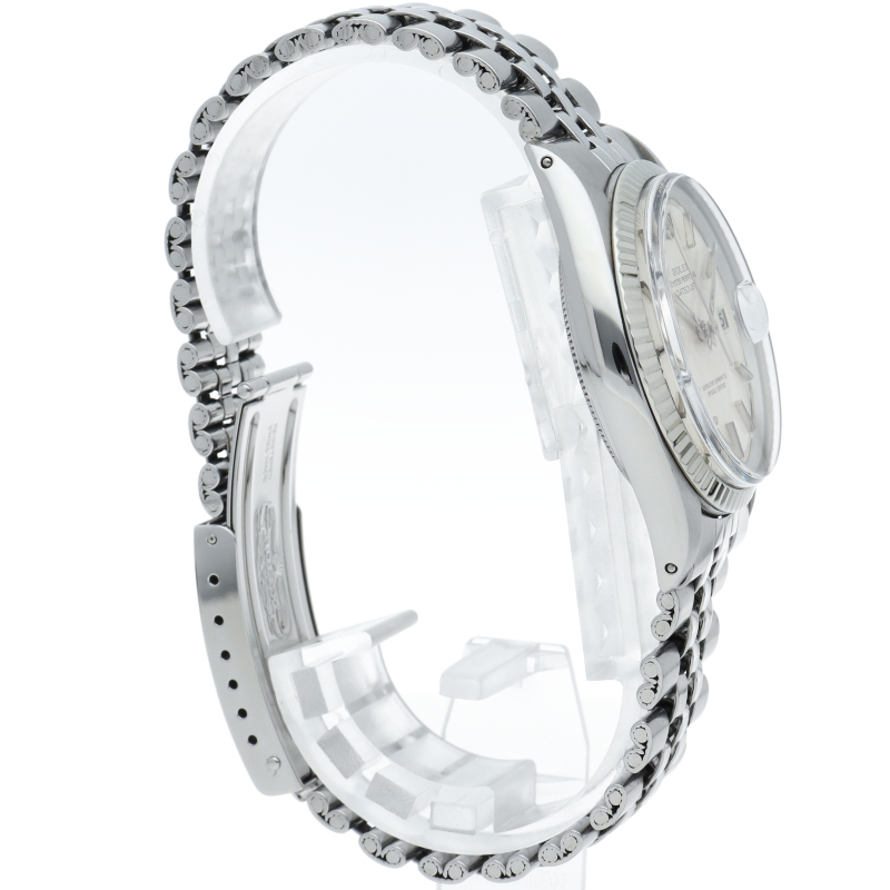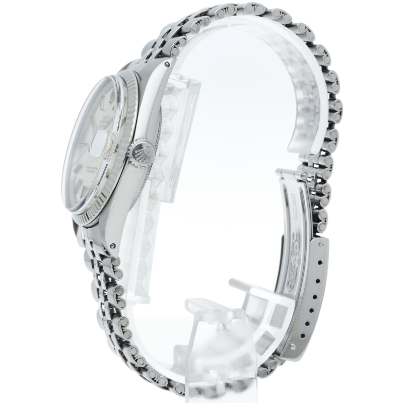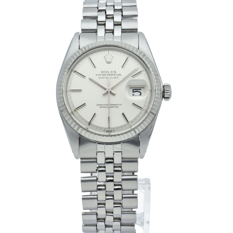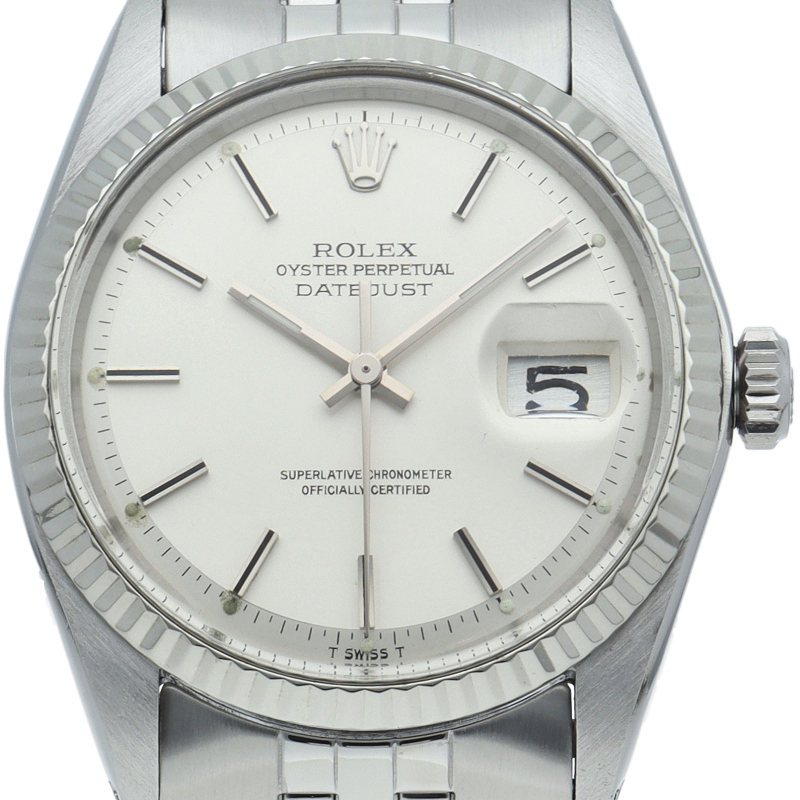 ロレックスのドレスウォッチの王道「デイトジャスト」。ホワイトゴールドとステンレスの組み合わせが高級感を感じさせる1本です。プラスチック風防仕様。
