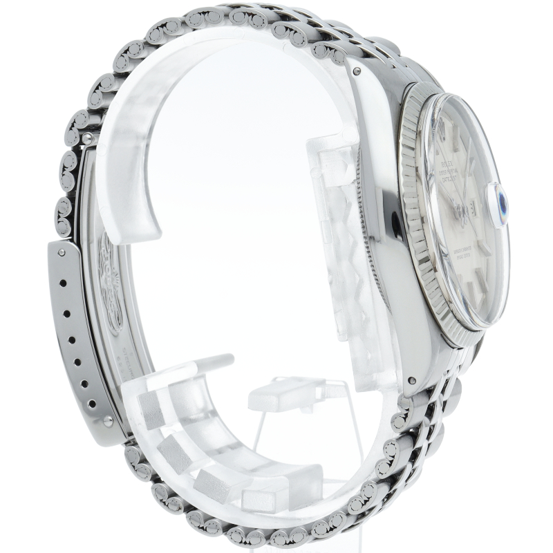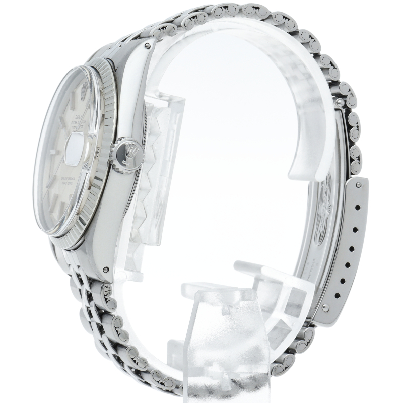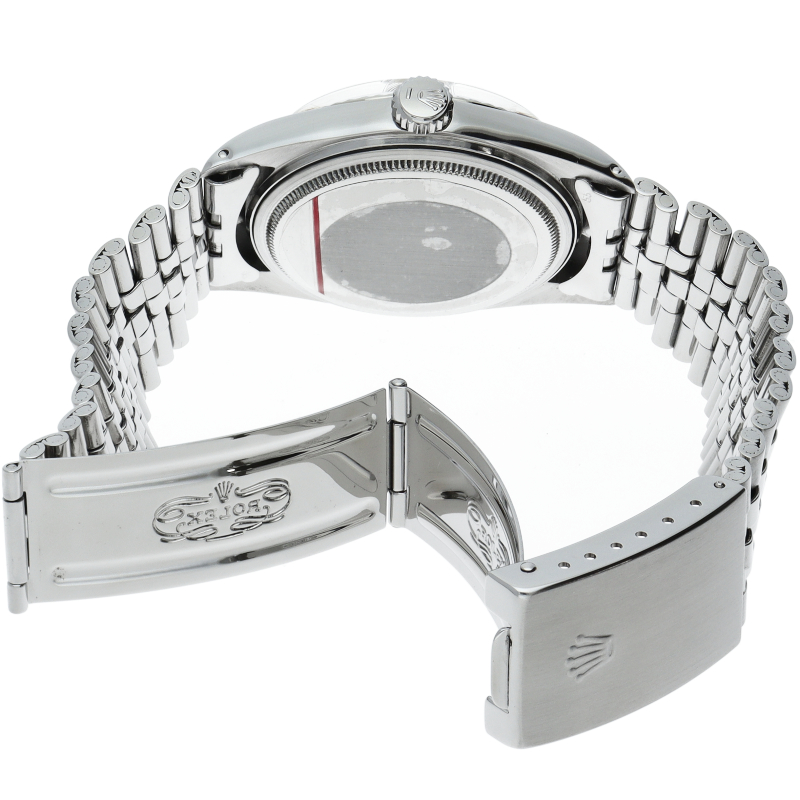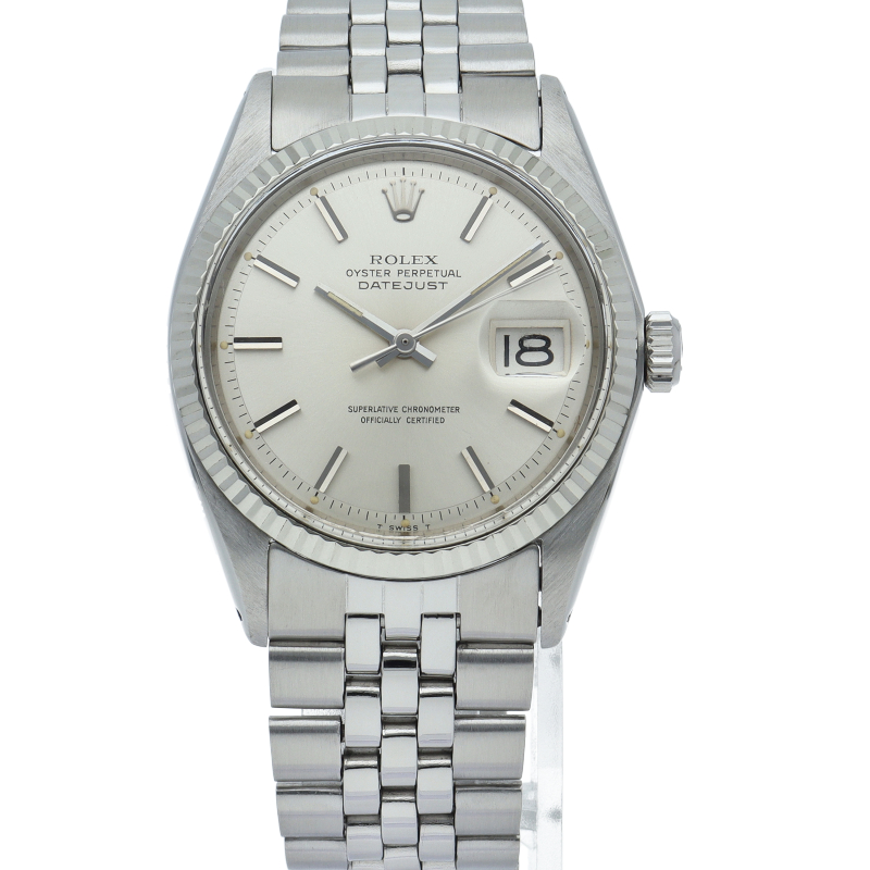 ロレックスのドレスウォッチの王道「デイトジャスト」。ホワイトゴールドとステンレスの組み合わせが高級感を感じさせる1本です。プラスチック風防仕様。