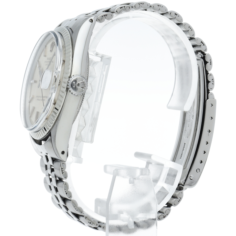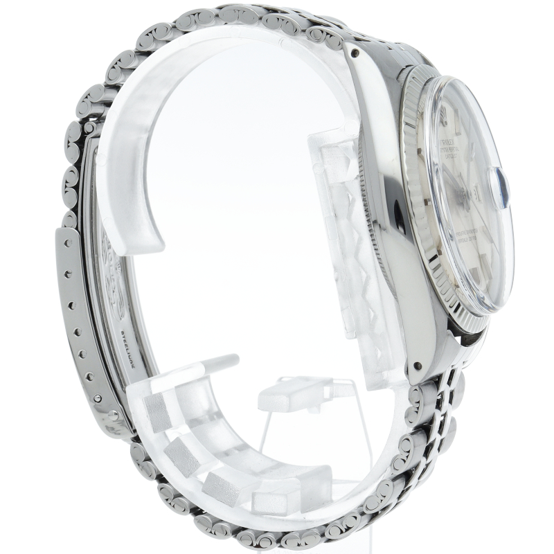 ロレックスのドレスウォッチの王道「デイトジャスト」。ホワイトゴールドとステンレスの組み合わせが高級感を感じさせる1本です。プラスチック風防仕様。