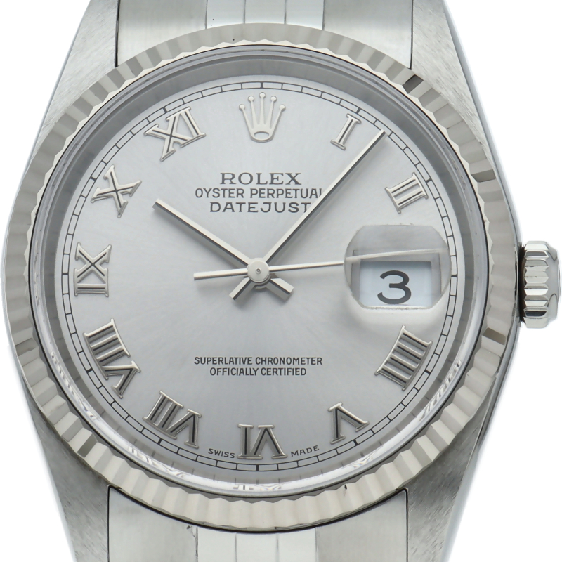 ロレックスのドレスウォッチの王道「デイトジャスト」。ホワイトゴールドとステンレスの組み合わせが上品で高級感を感じさせる1本です。