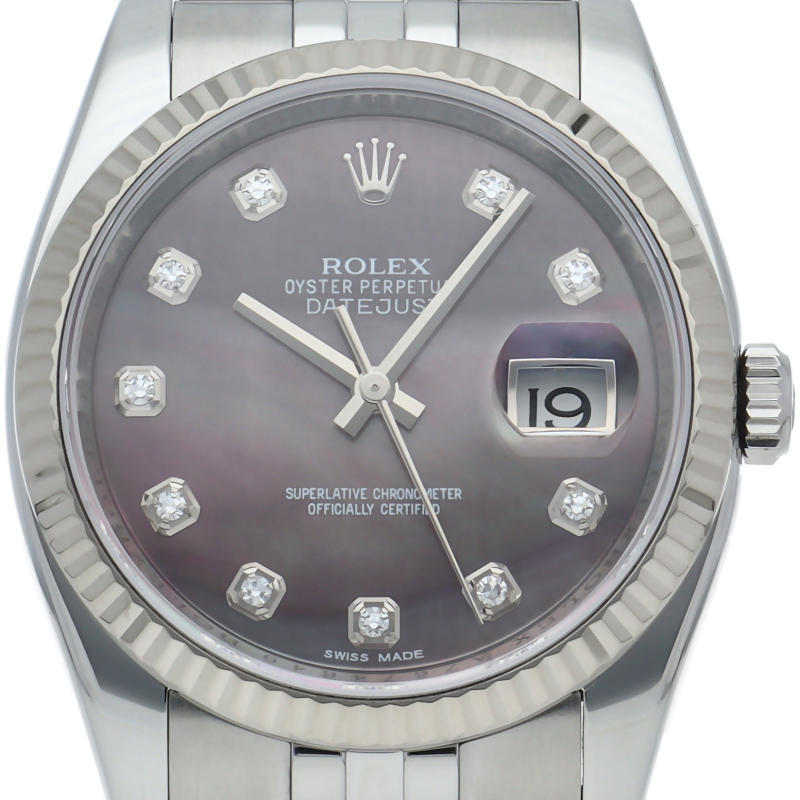 デイトジャスト36 メンズ時計 10Pダイヤ ブラックシェル