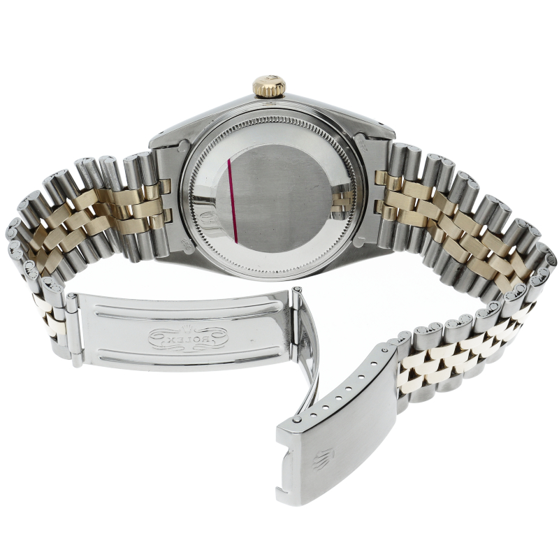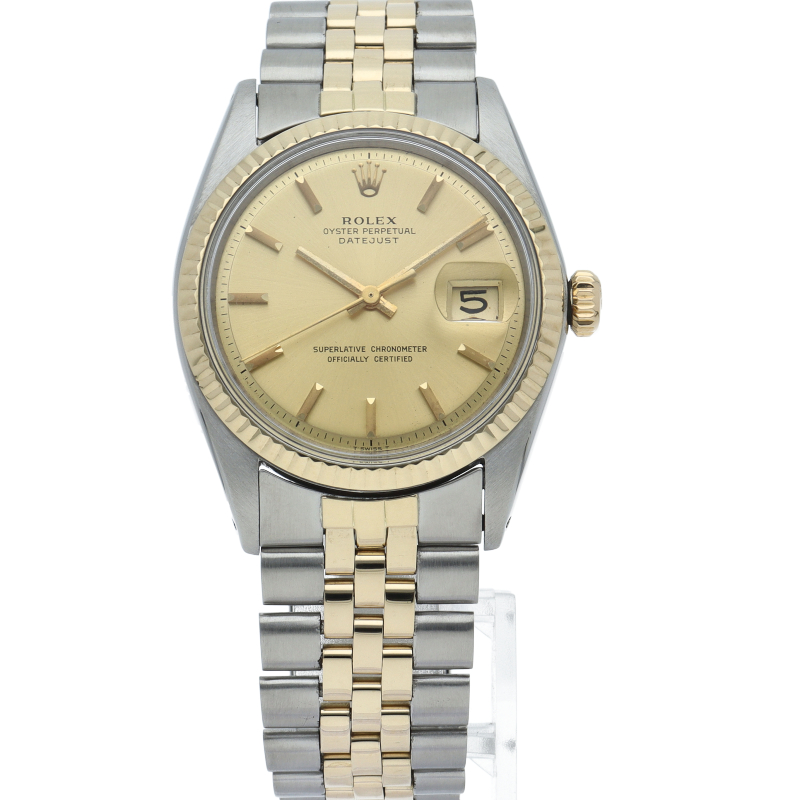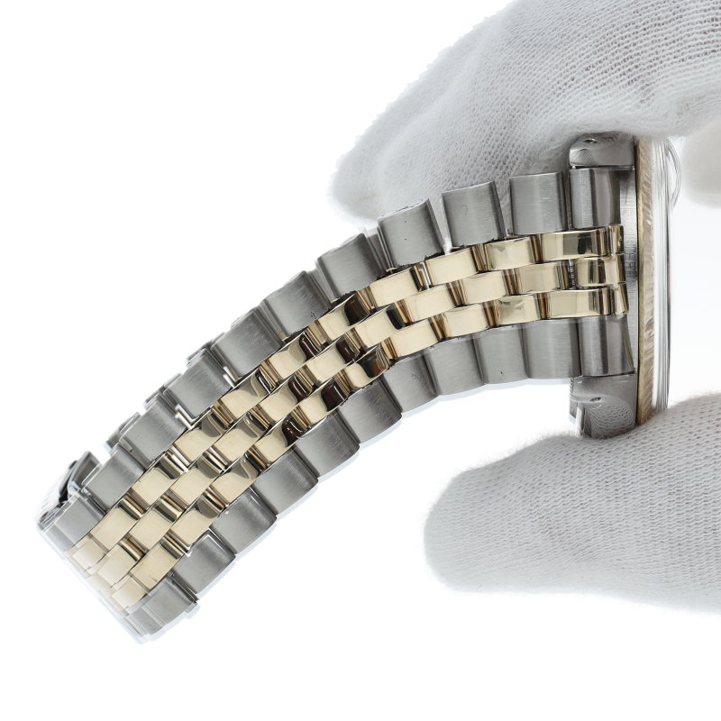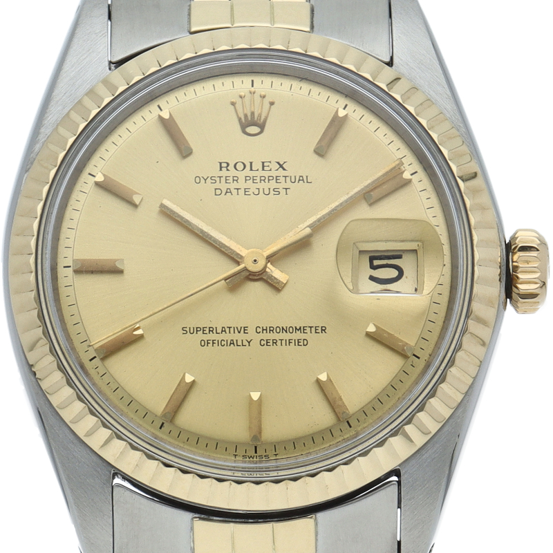 ロレックスのドレスウォッチの王道「デイトジャスト」。イエローゴールドとステンレスの組み合わせが高級感を感じさせる1本です。プラスチック風防仕様。1601/3。