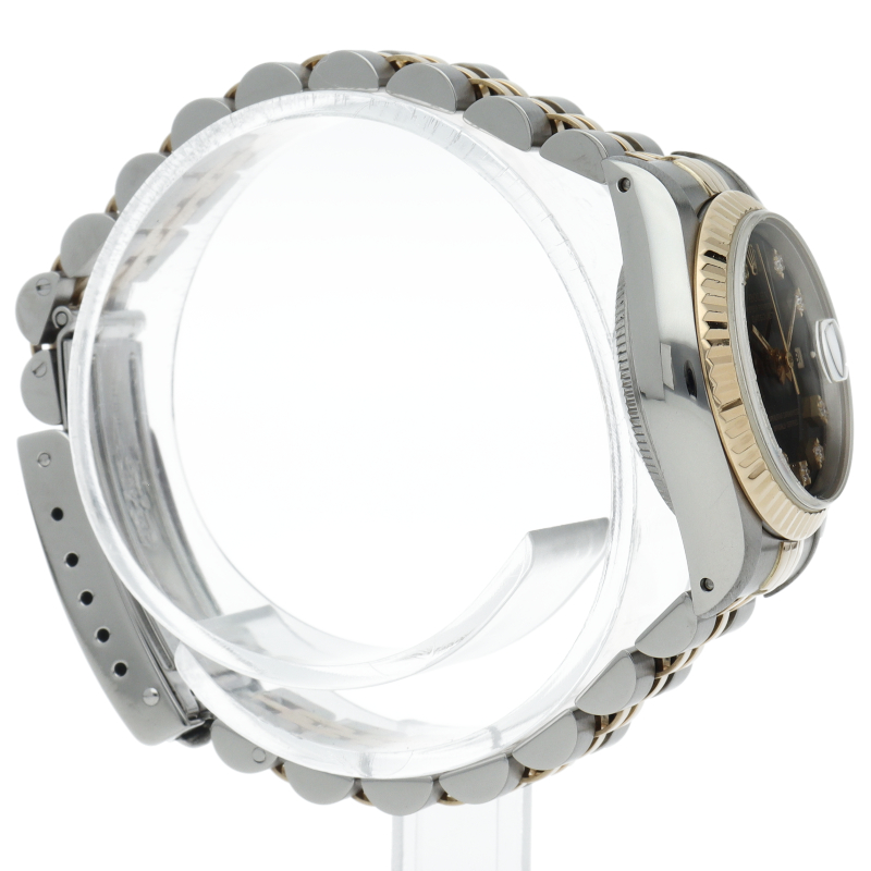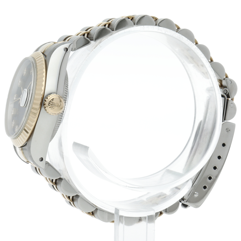 ロレックスのドレスウォッチで幅広い年齢層に愛されているデイトジャスト。イエローゴールドとステンレスのコンビ仕様に10Pダイヤが施され豪華です。