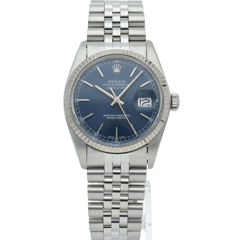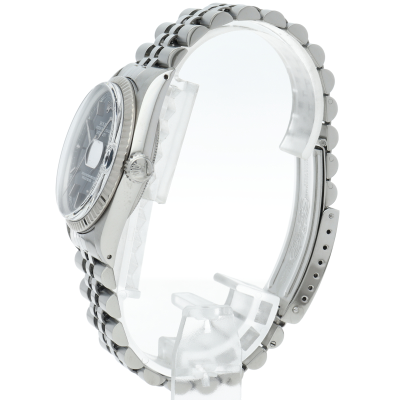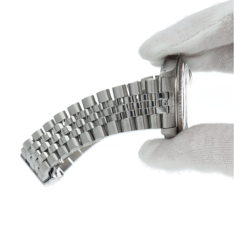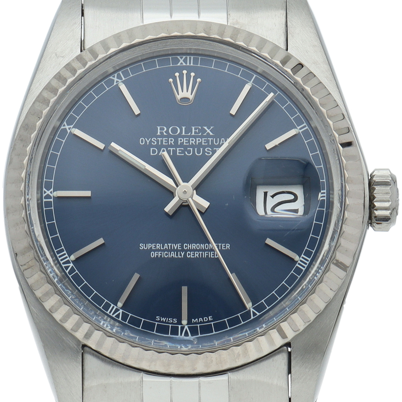 ロレックスのドレスウォッチの王道「デイトジャスト」。ホワイトゴールドとステンレスの組み合わせが高級感を感じさせる1本です。プラスチック風防仕様。
