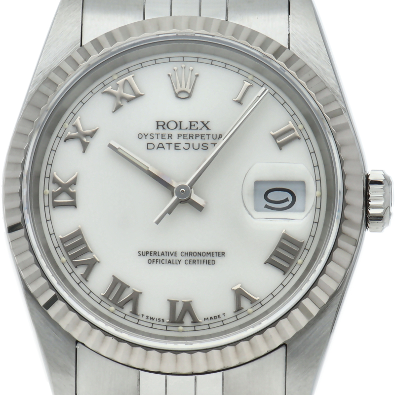 ロレックスのドレスウォッチの王道「デイトジャスト」。ホワイトゴールドとステンレスの組み合わせが高級感を感じさせる1本です。