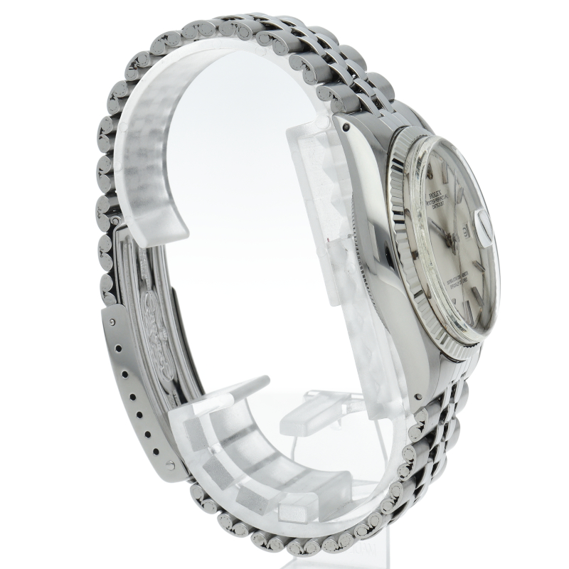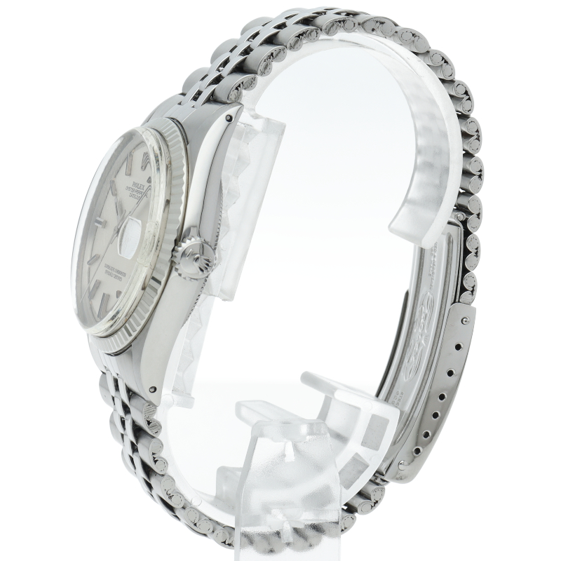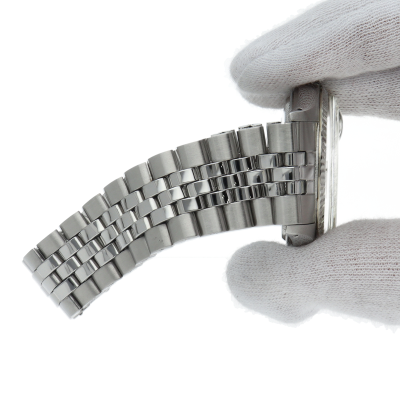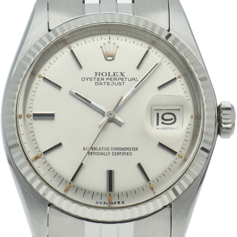 ロレックスのドレスウォッチの王道「デイトジャスト」。ホワイトゴールドとステンレスの組み合わせが高級感を感じさせる1本です。プラスチック風防仕様。