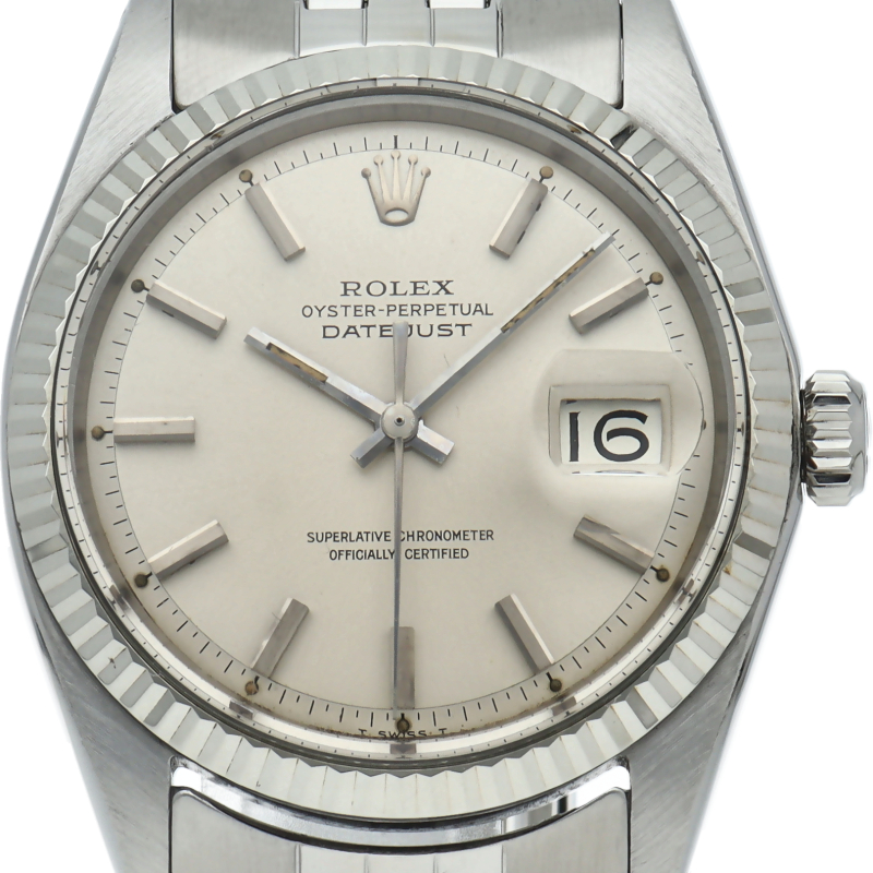 ロレックスのドレスウォッチの王道「デイトジャスト」。ホワイトーゴールドとステンレスの組み合わせが高級感を感じさせる1本です。プラスチック風防仕様。1601/4。